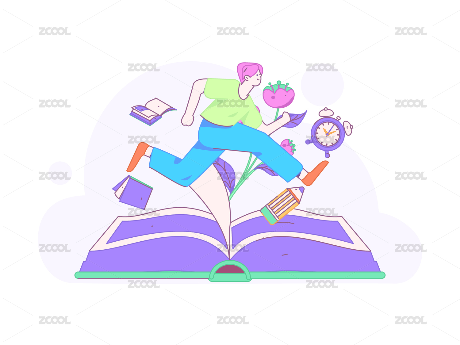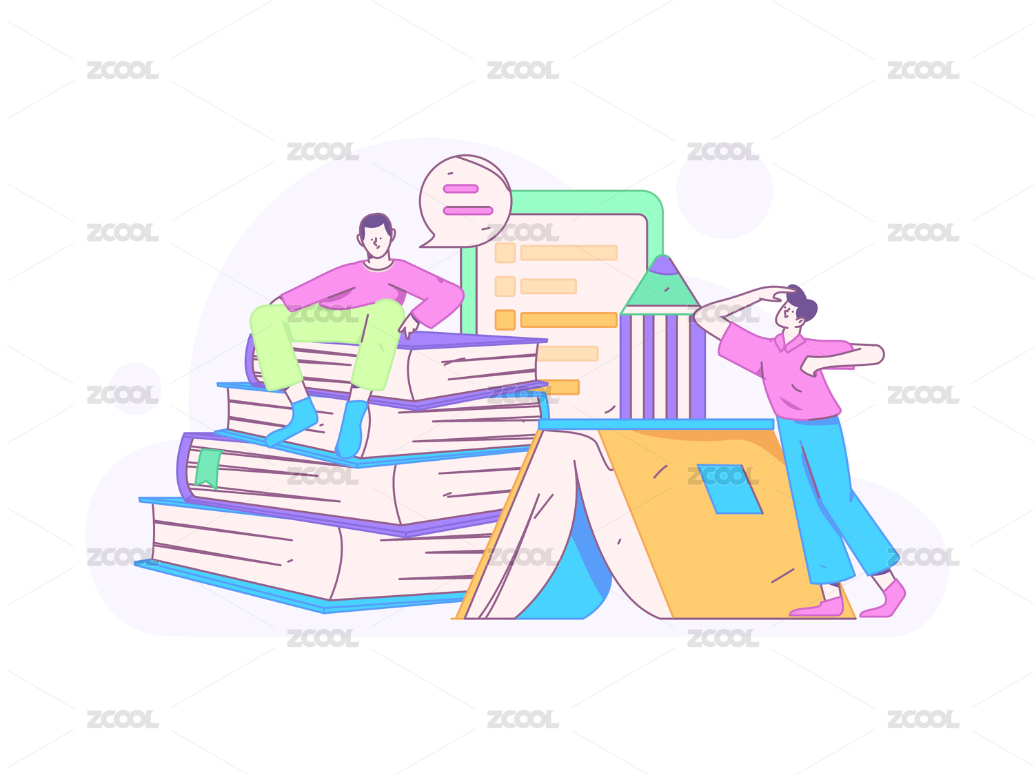 世界读书日阅读人物扁平矢量概念运营手绘插