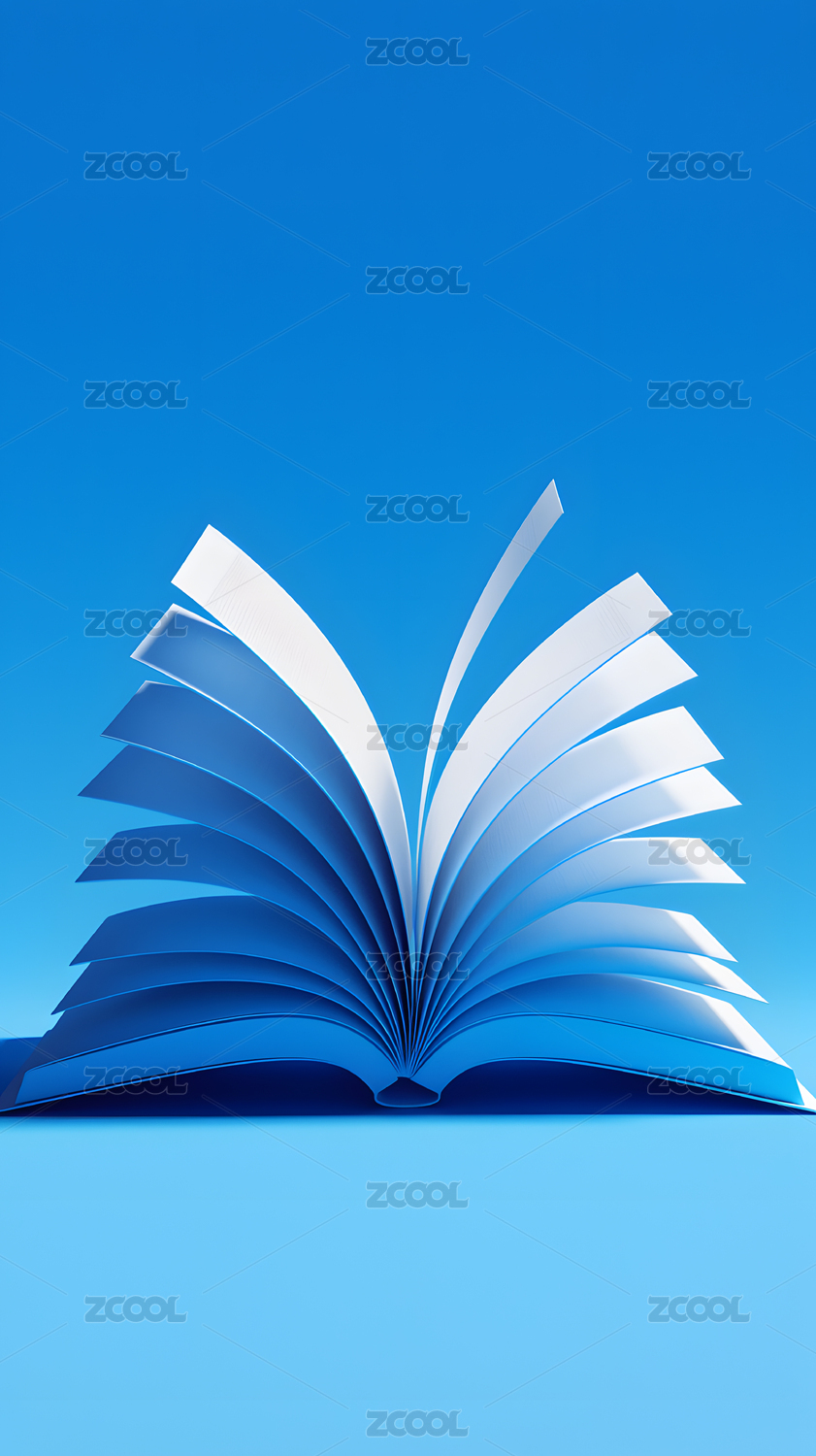 读书日蓝色背景打开的书