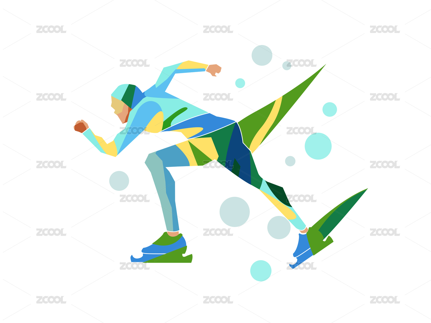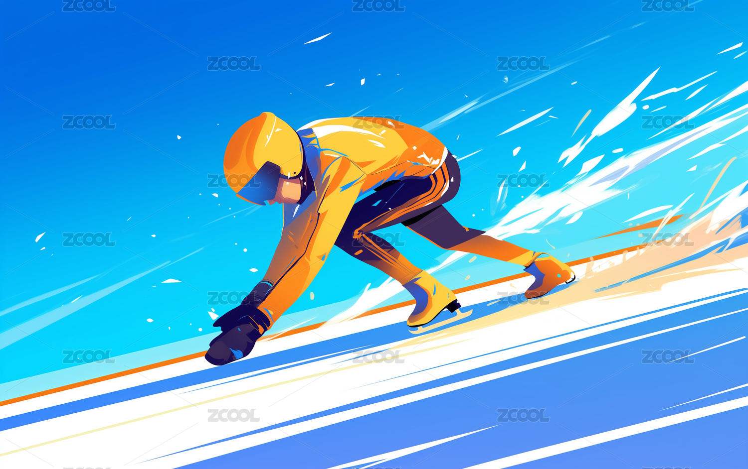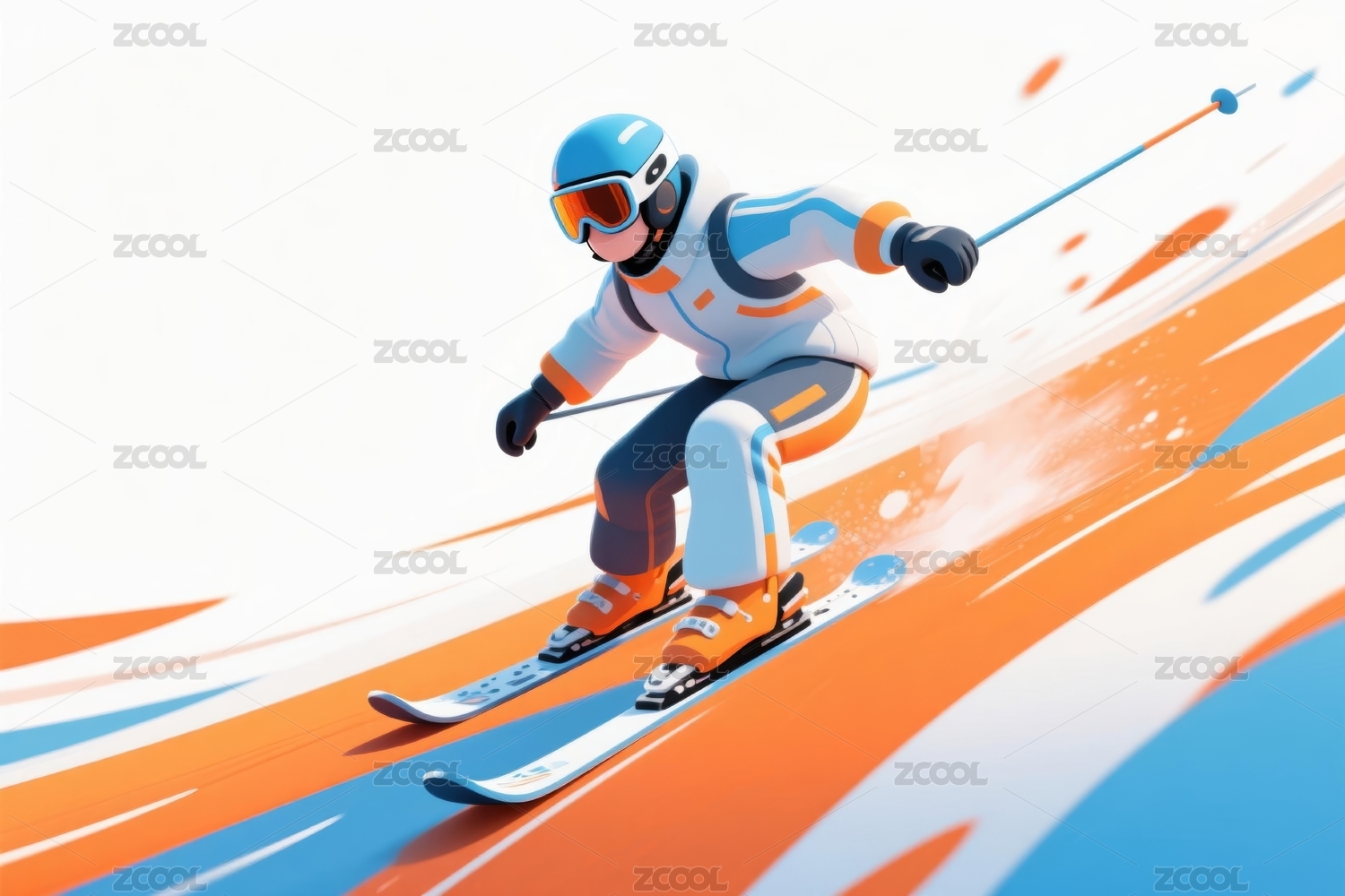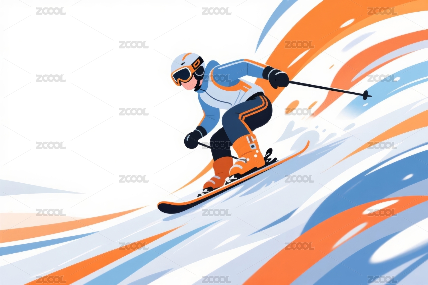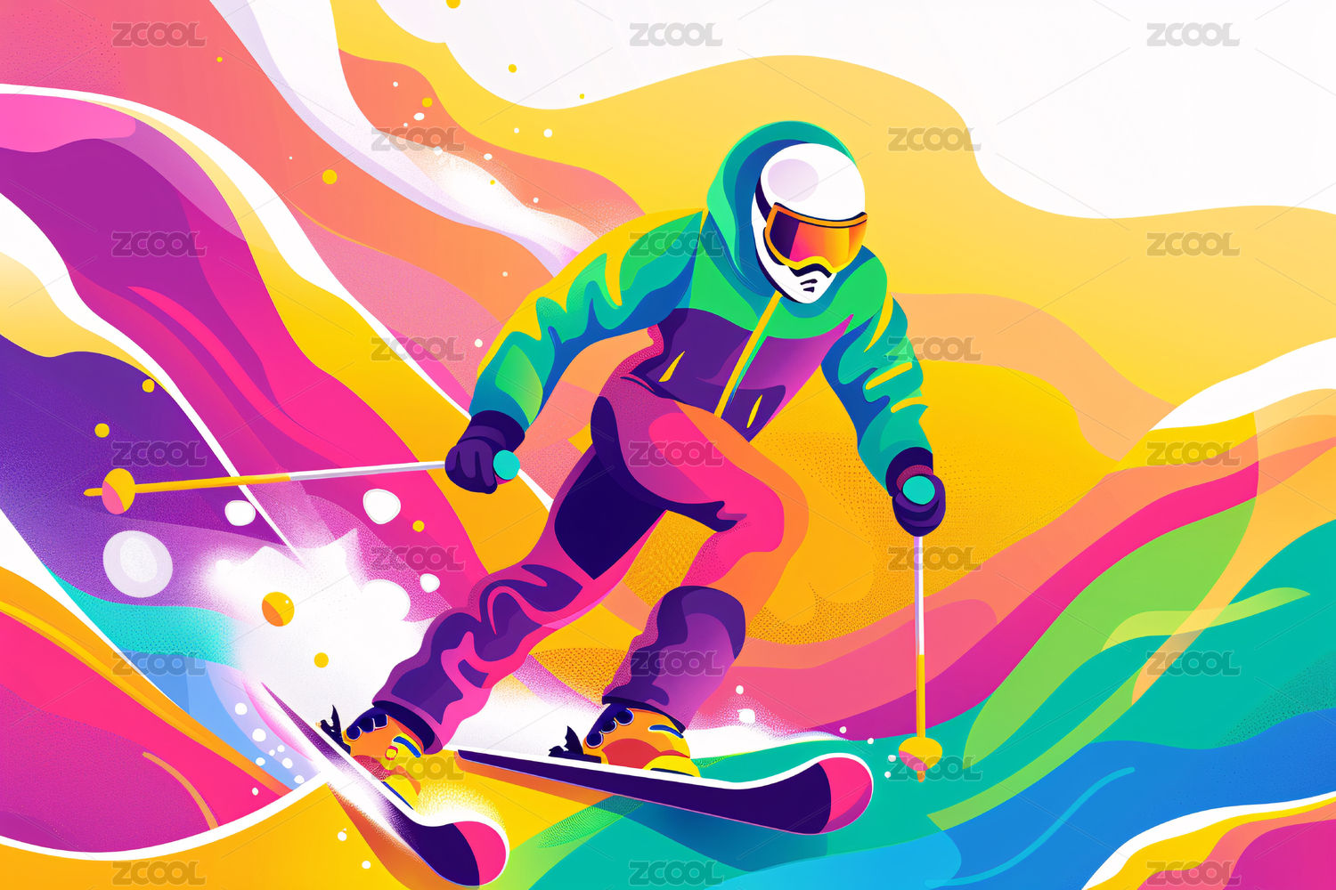运动员冬季户外滑雪训练比赛竞技运动会插画