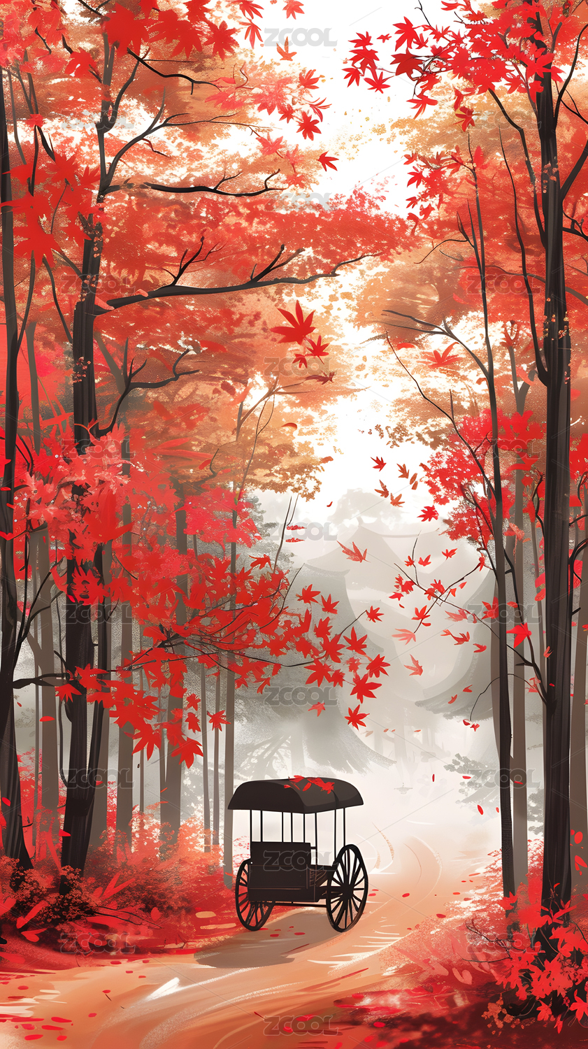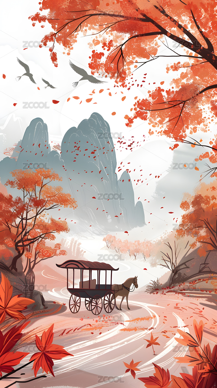 AIGCFG,中国风,插画,中式风格,国潮风,国风,秋天,立秋,枫叶,枫叶林