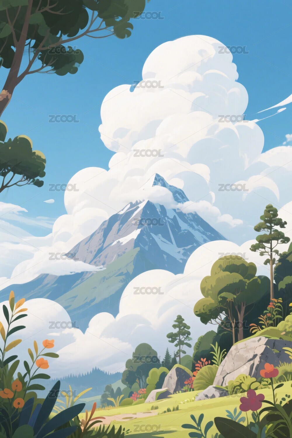 中国风,山川,山,高山,天空,风景,卡通,插画