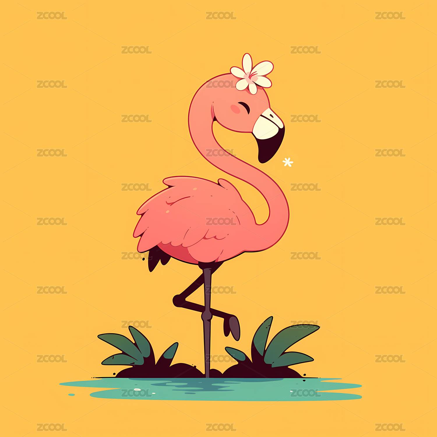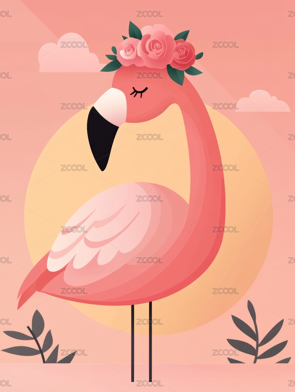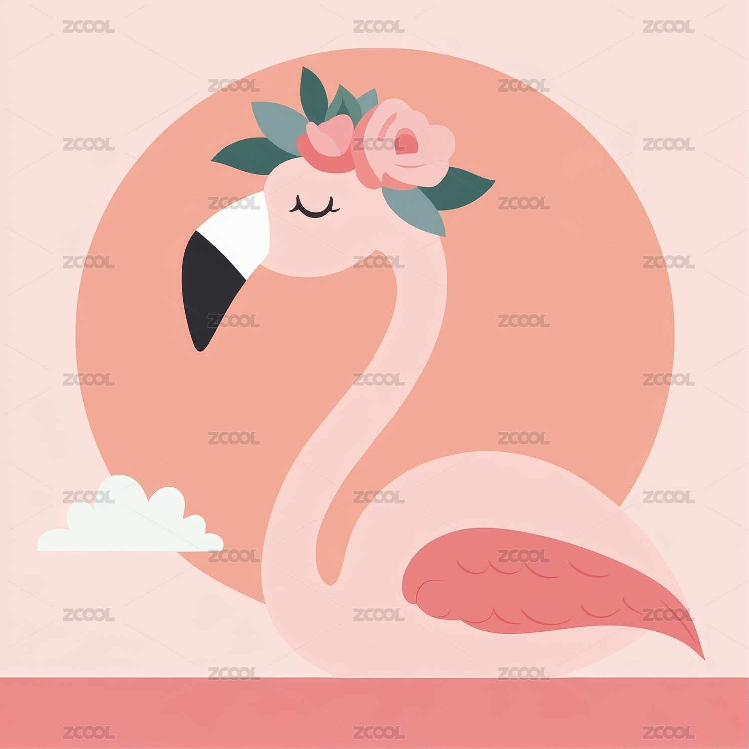 火烈鸟,粉色,花环,花朵,背景,梦幻,优雅,插画,卡通,动物
