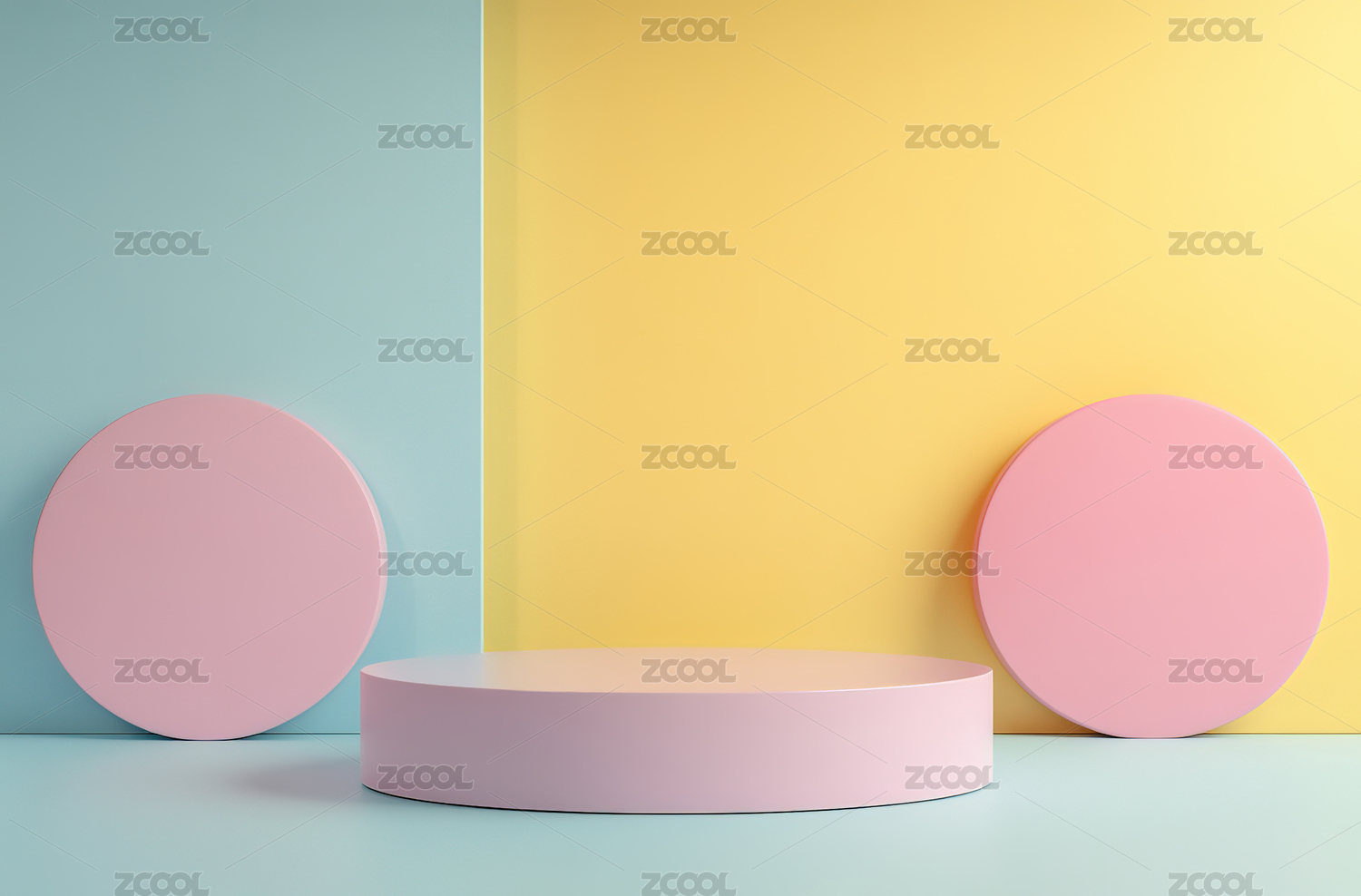 蓝粉色调几何展台场景