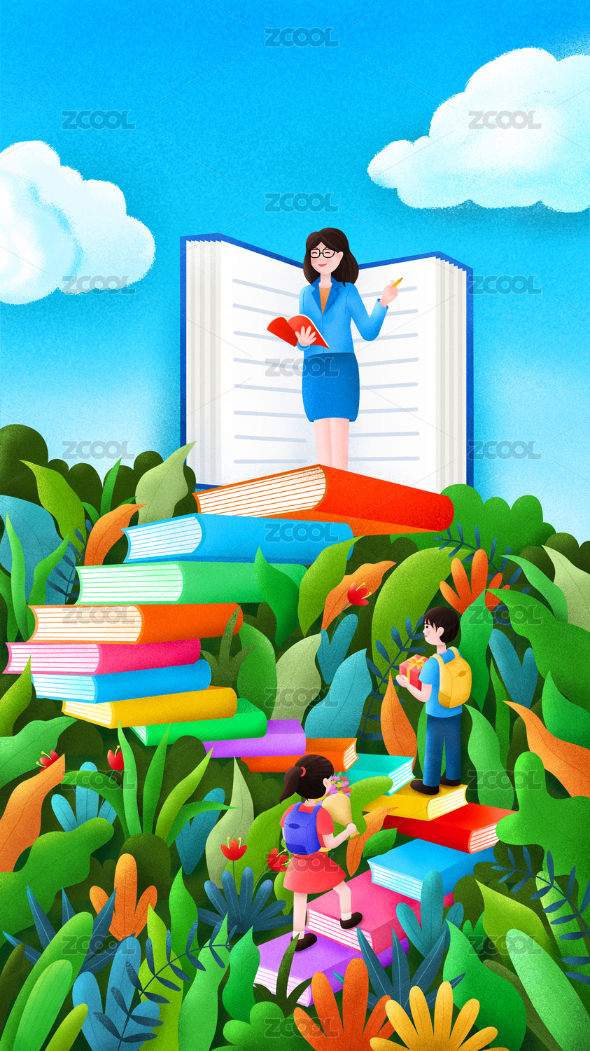 教师节,读书日,学生,书本,书,卡通,插画,人
