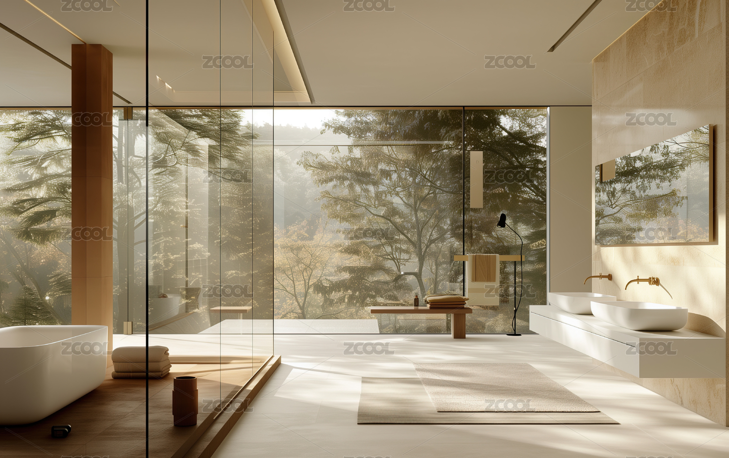现代卧室,当代设计,室内,简约,自然景观,郁郁葱葱的绿色植物,宁静,宽敞,明亮,放松