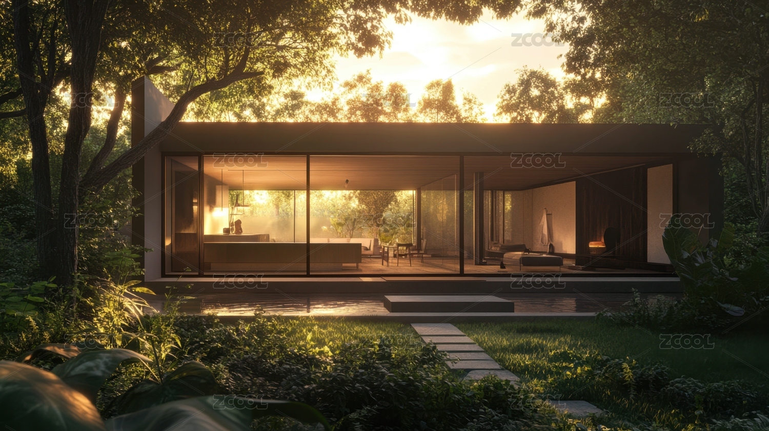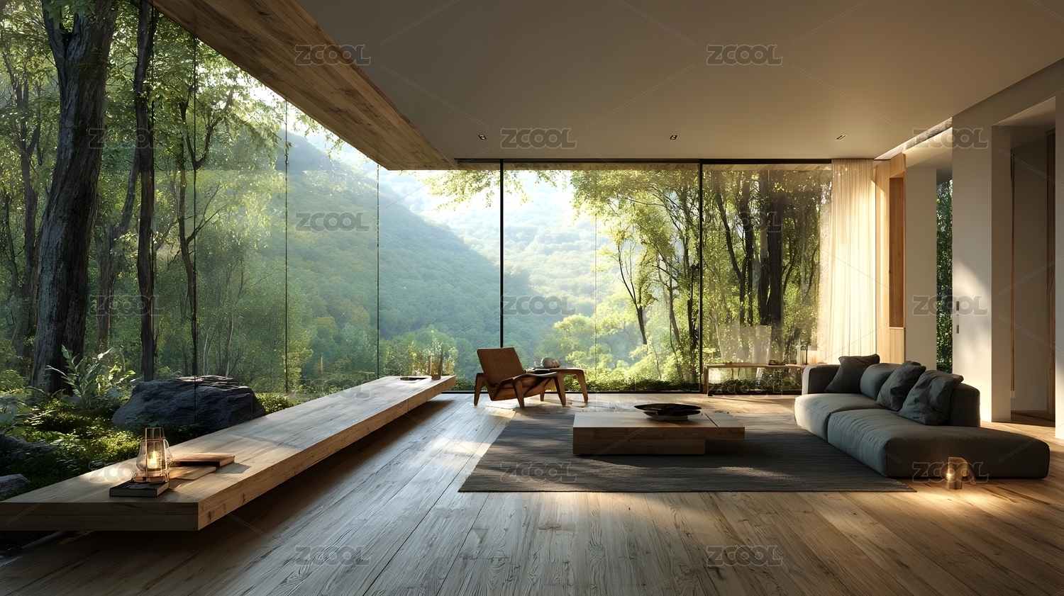 宁静现代卧室可欣赏郁郁葱葱绿地