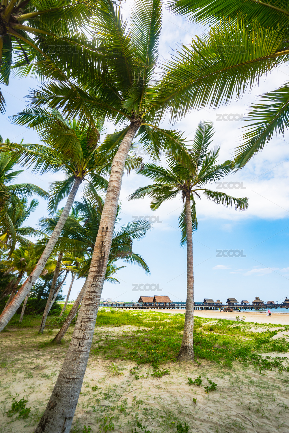 中国海南省文昌市高隆湾海滨椰林自然风光