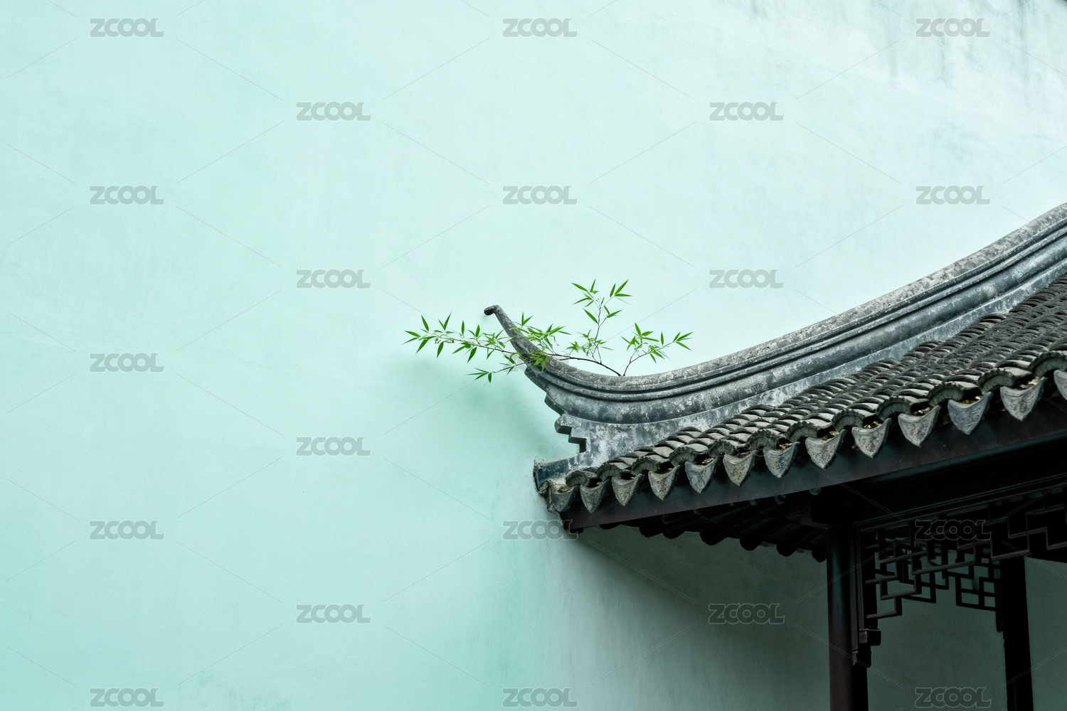 一堵具有中国古典徽派风格的墙和竹子