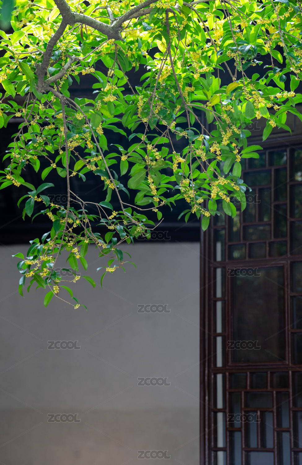 秋天苏州园林里桂花与江南古建筑