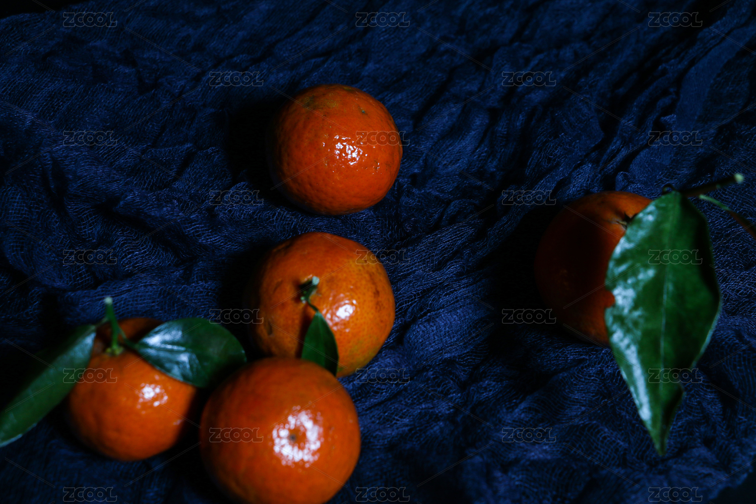满满一堆新鲜砂糖桔放在深蓝色背景布上