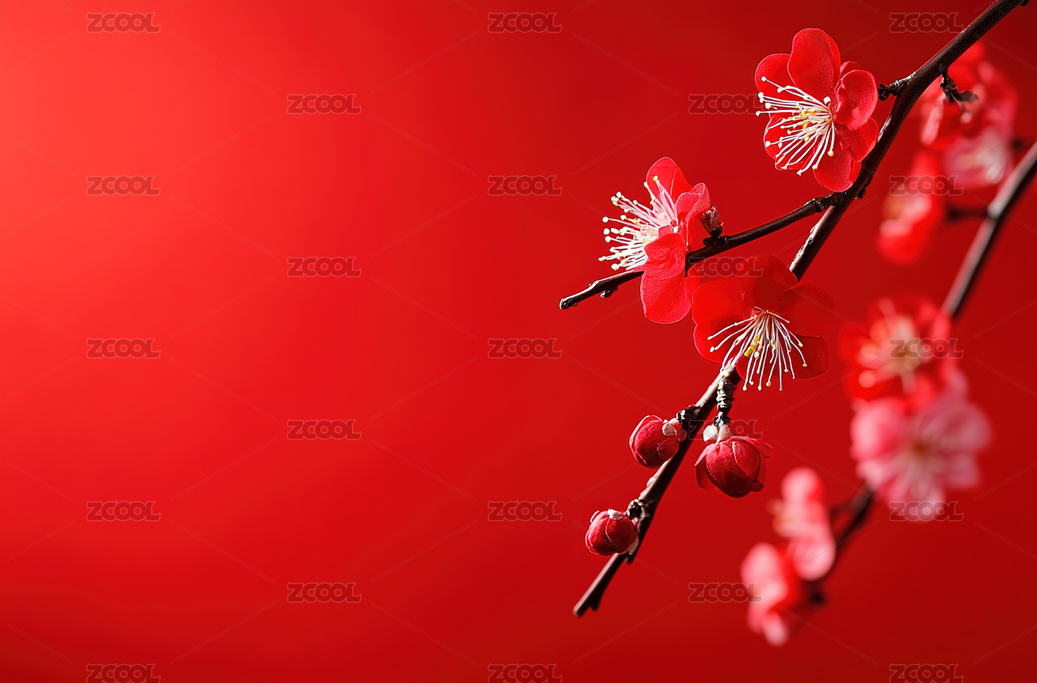 红背景上的梅花枝