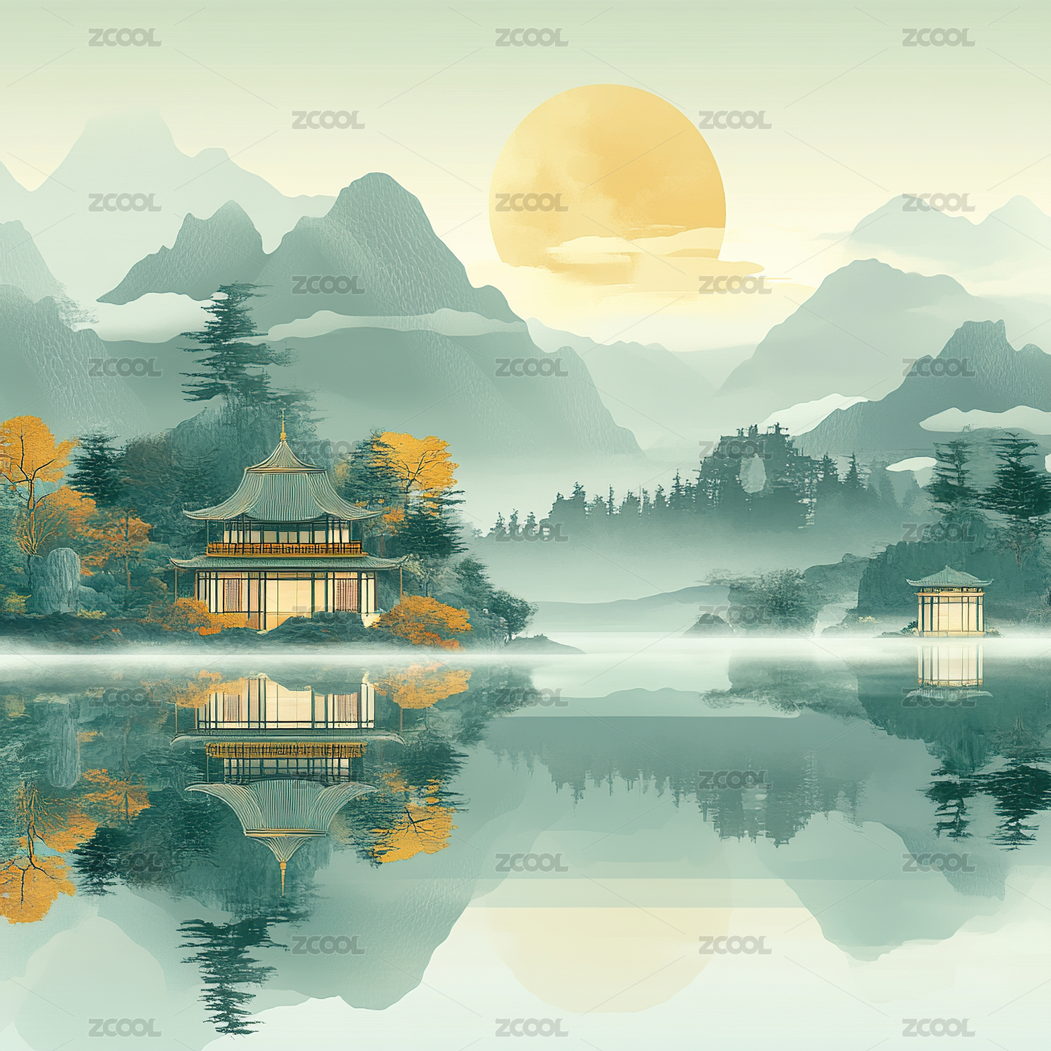 中国,艺术,插画,装饰,设计,背景,文化,水墨,水彩,古典