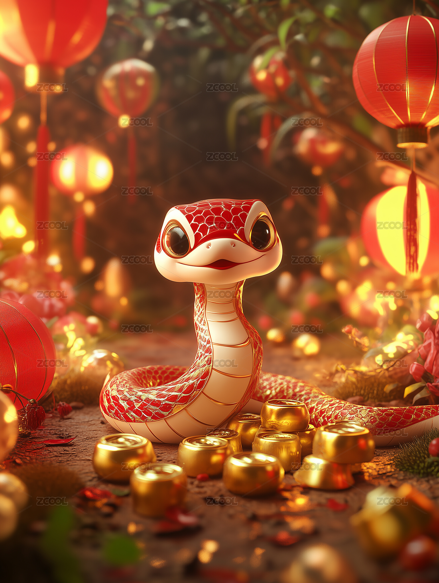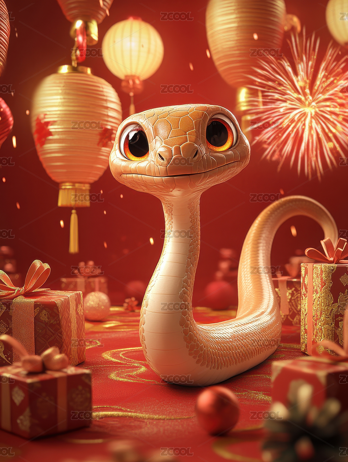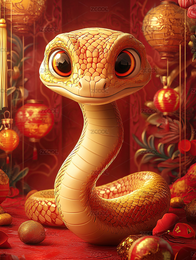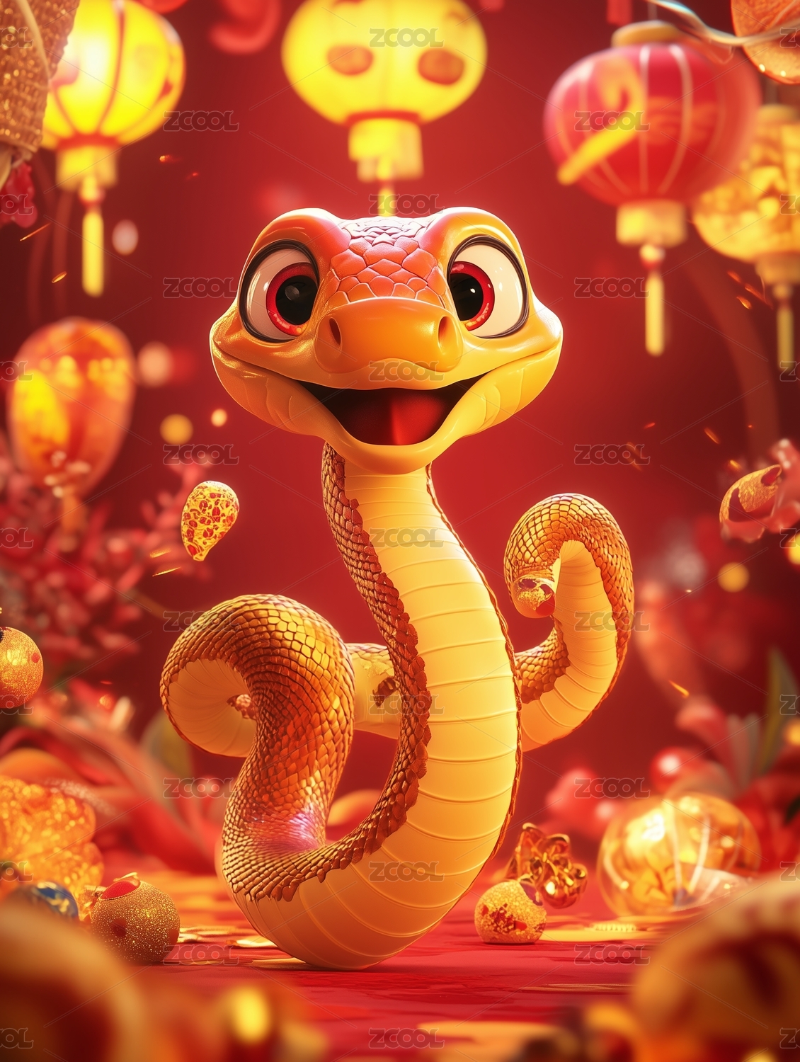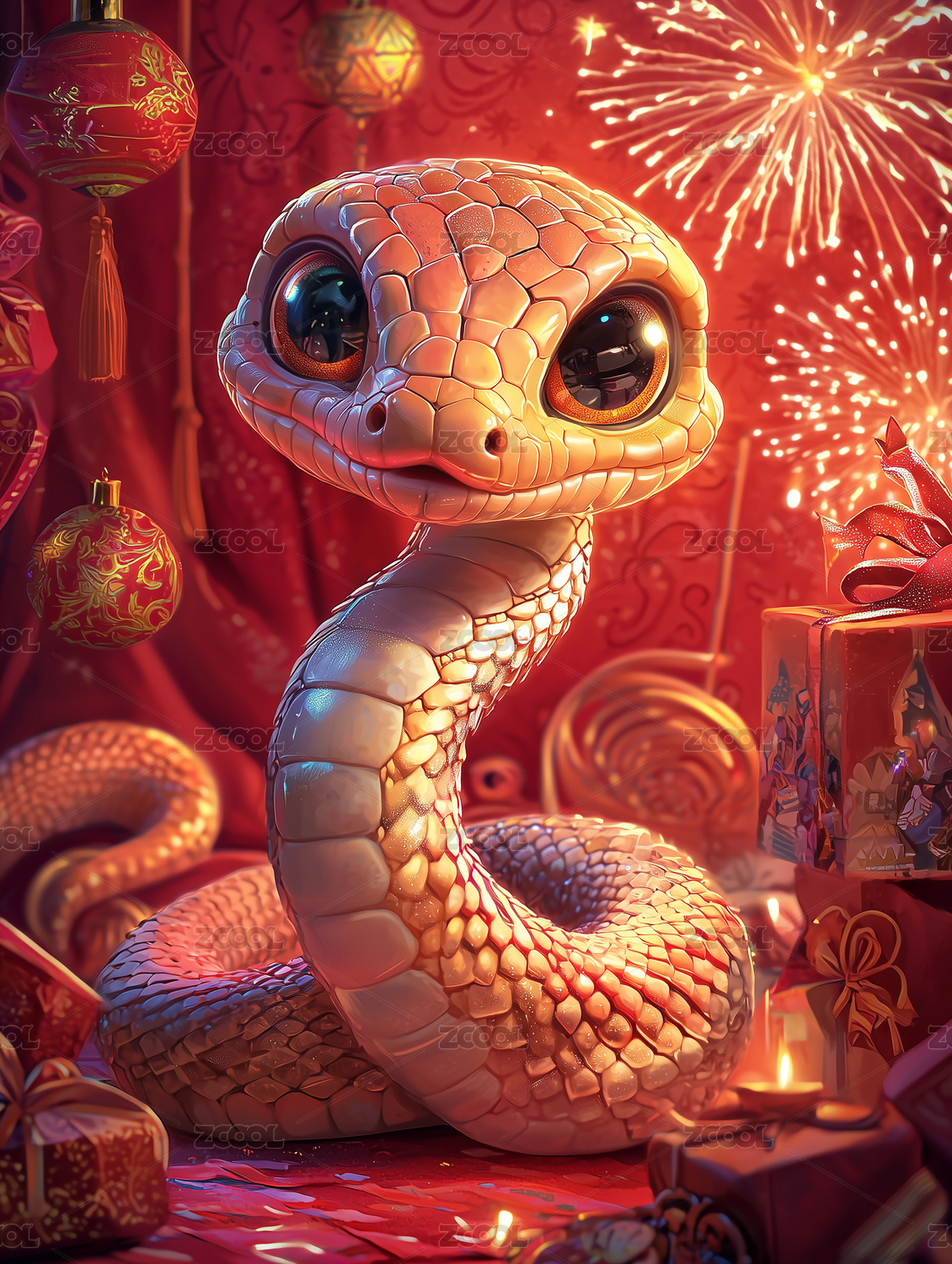 十二生肖蛇年卡通可爱的蛇IP设计春节背景