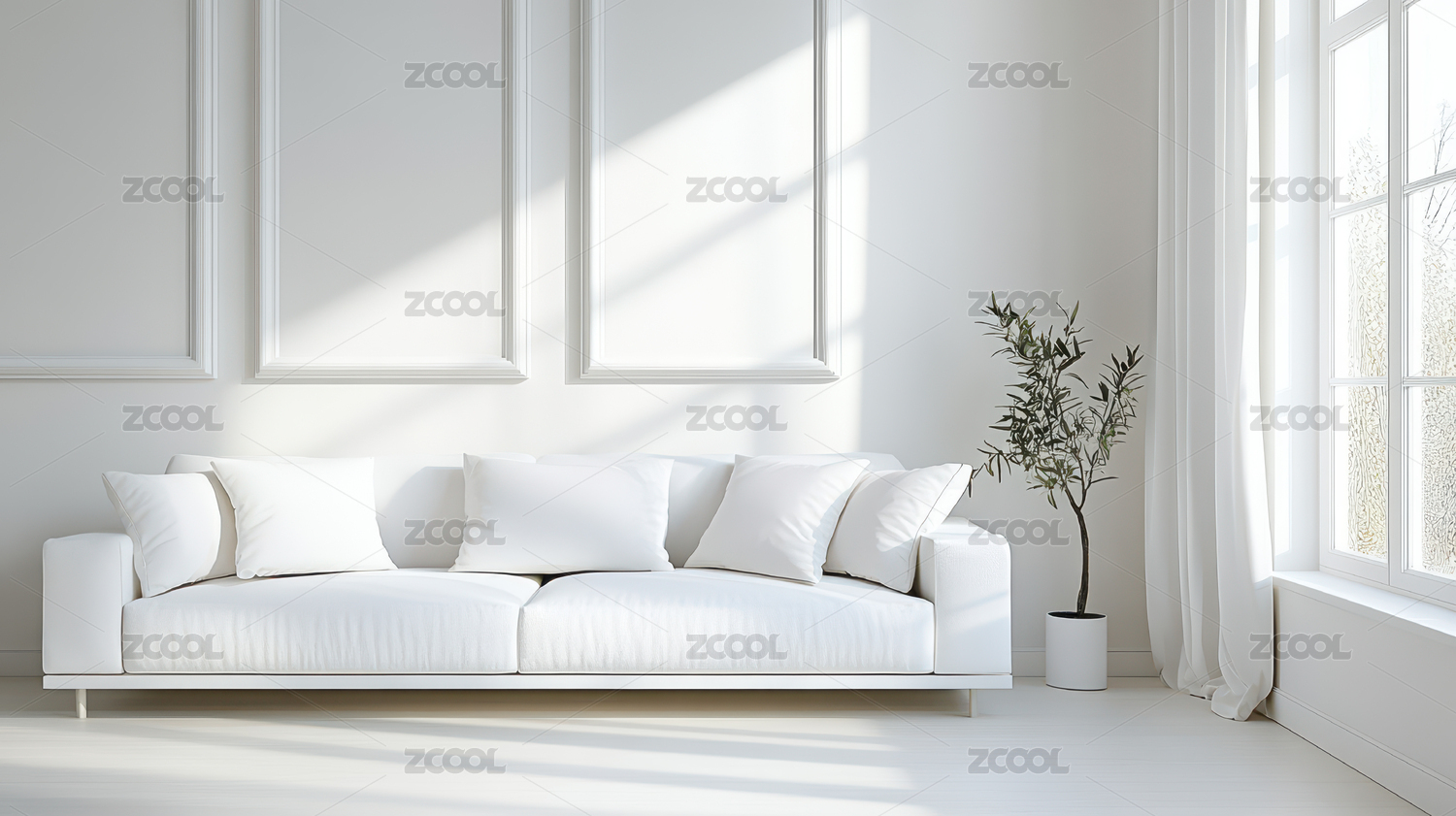 白色起居室客厅沙发窗户地板背景
