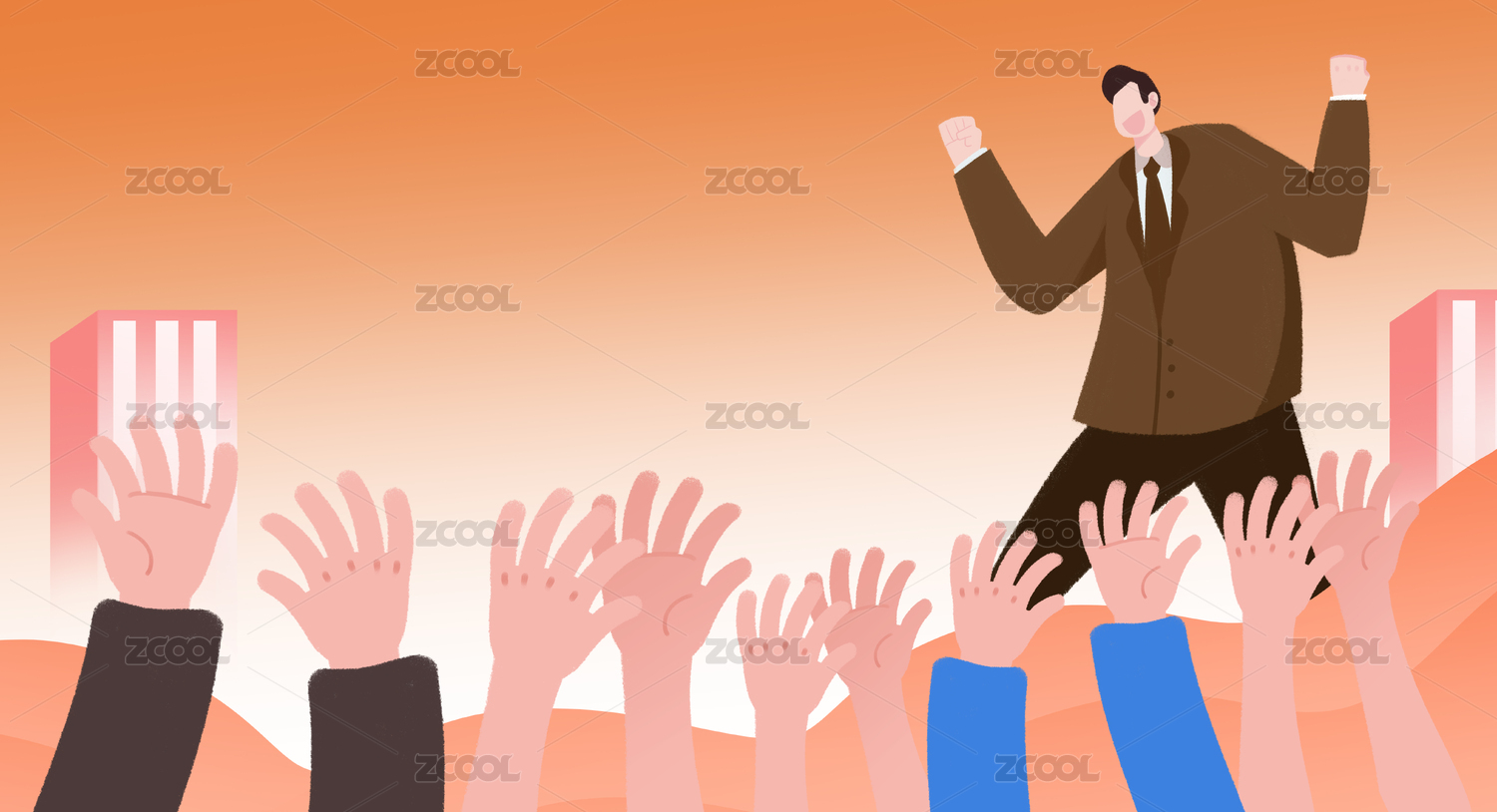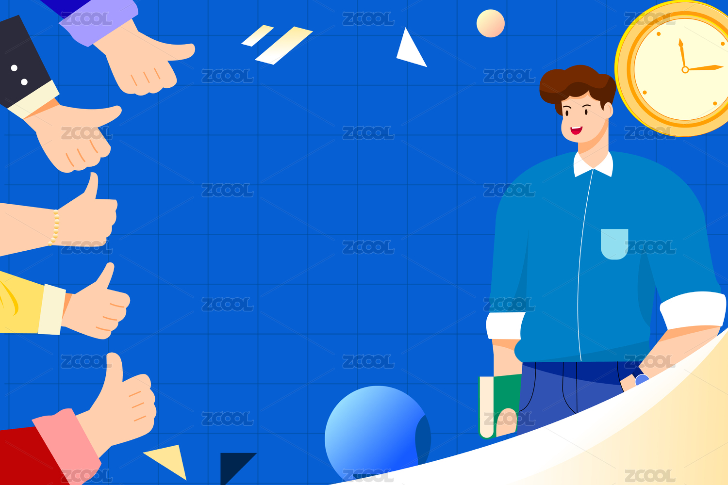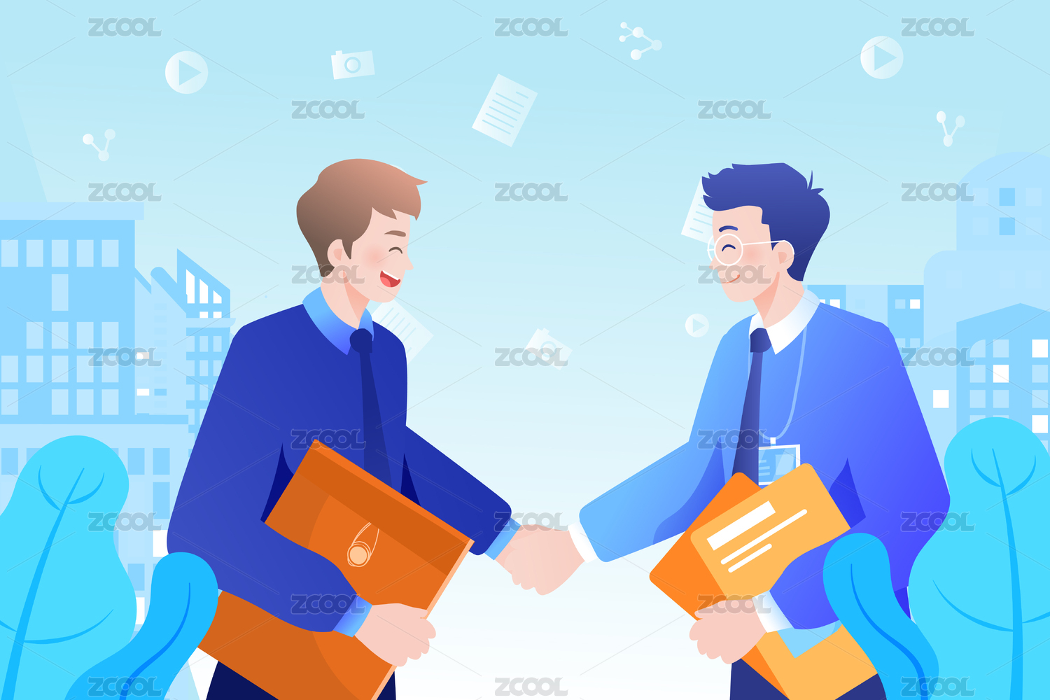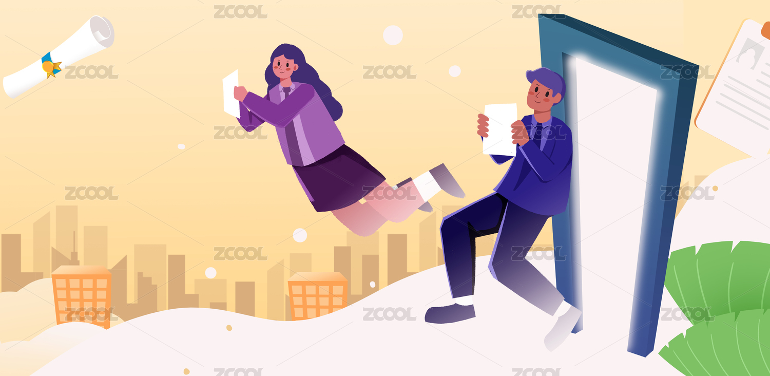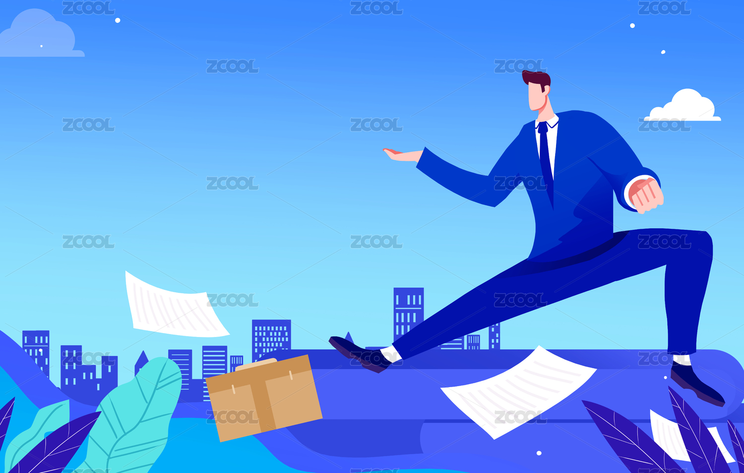 卡通蓝色手绘职场求职白领晋升闪屏海报插画
