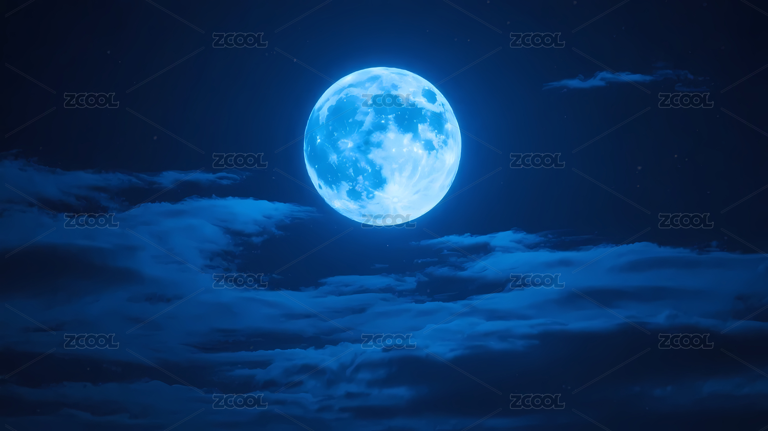 梦幻月亮背景唯美插图海上满月高清壁纸