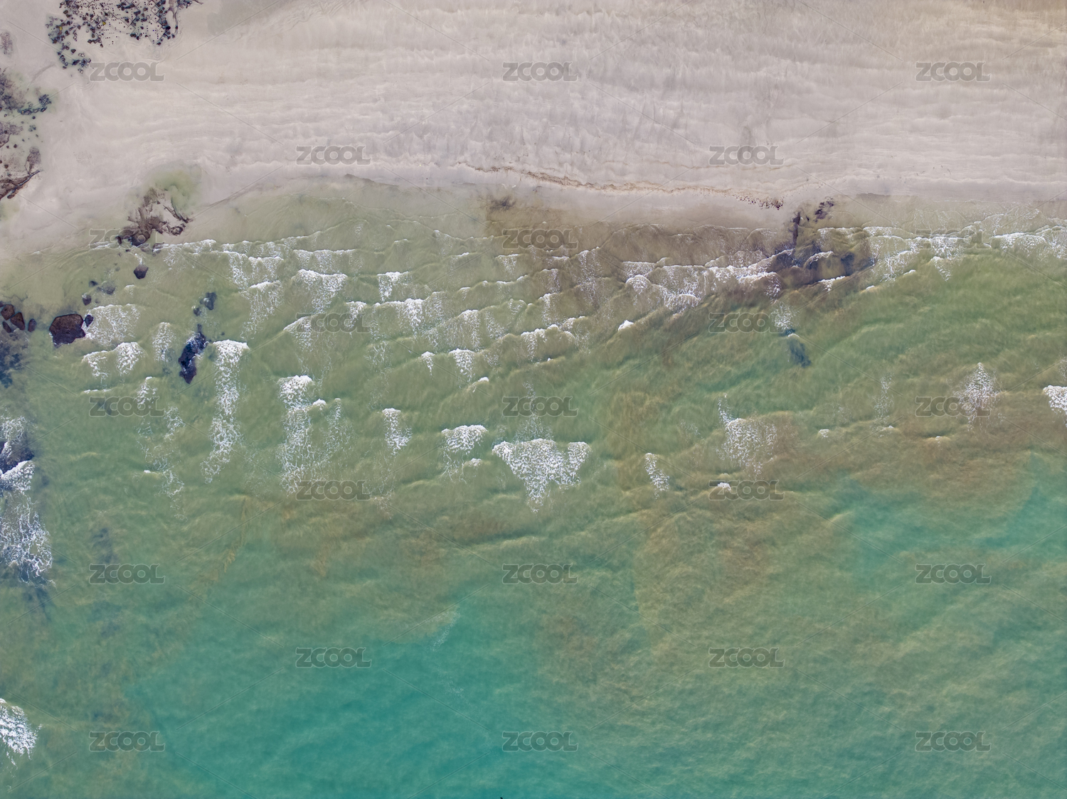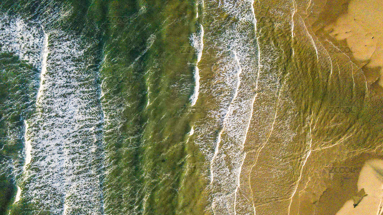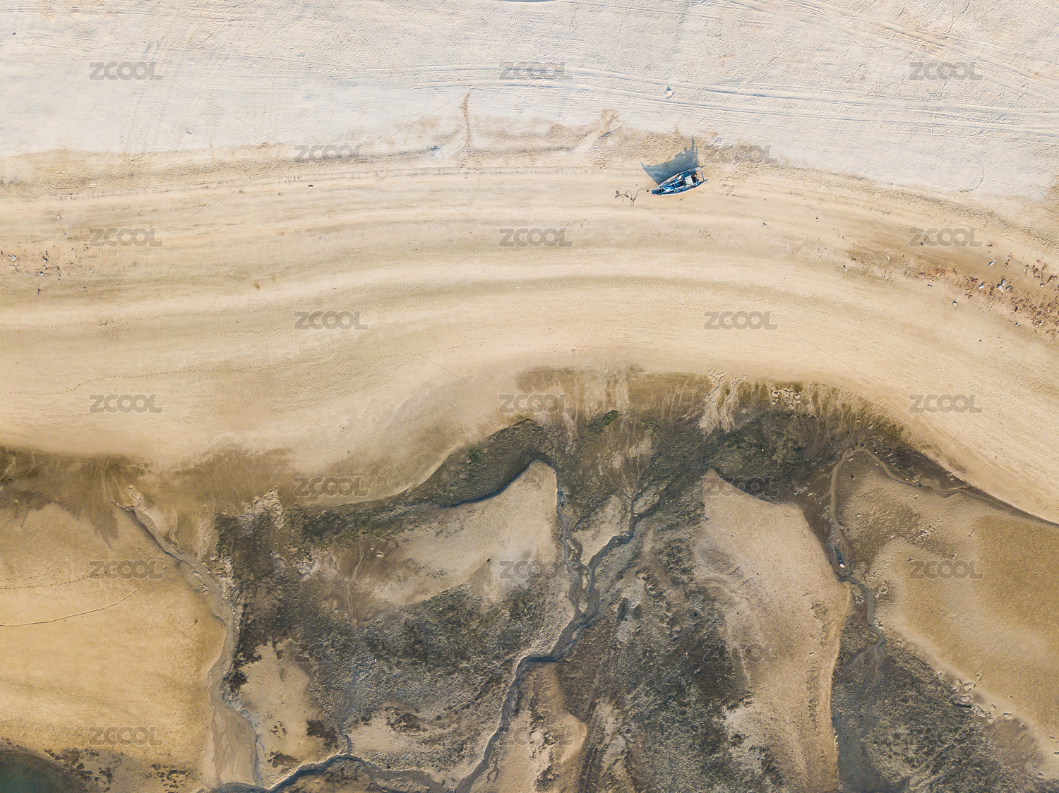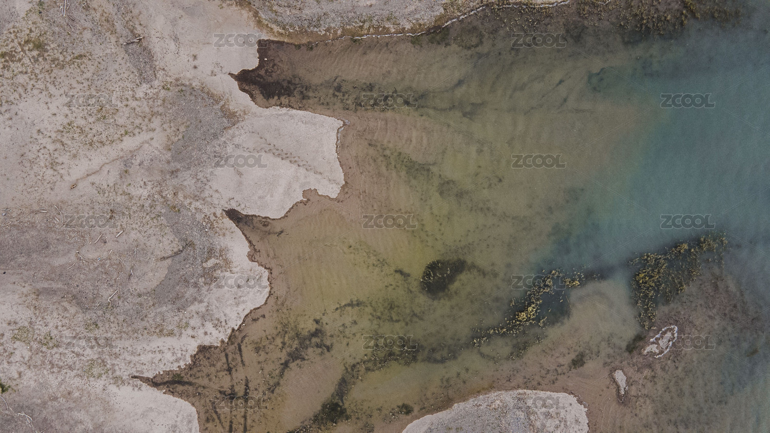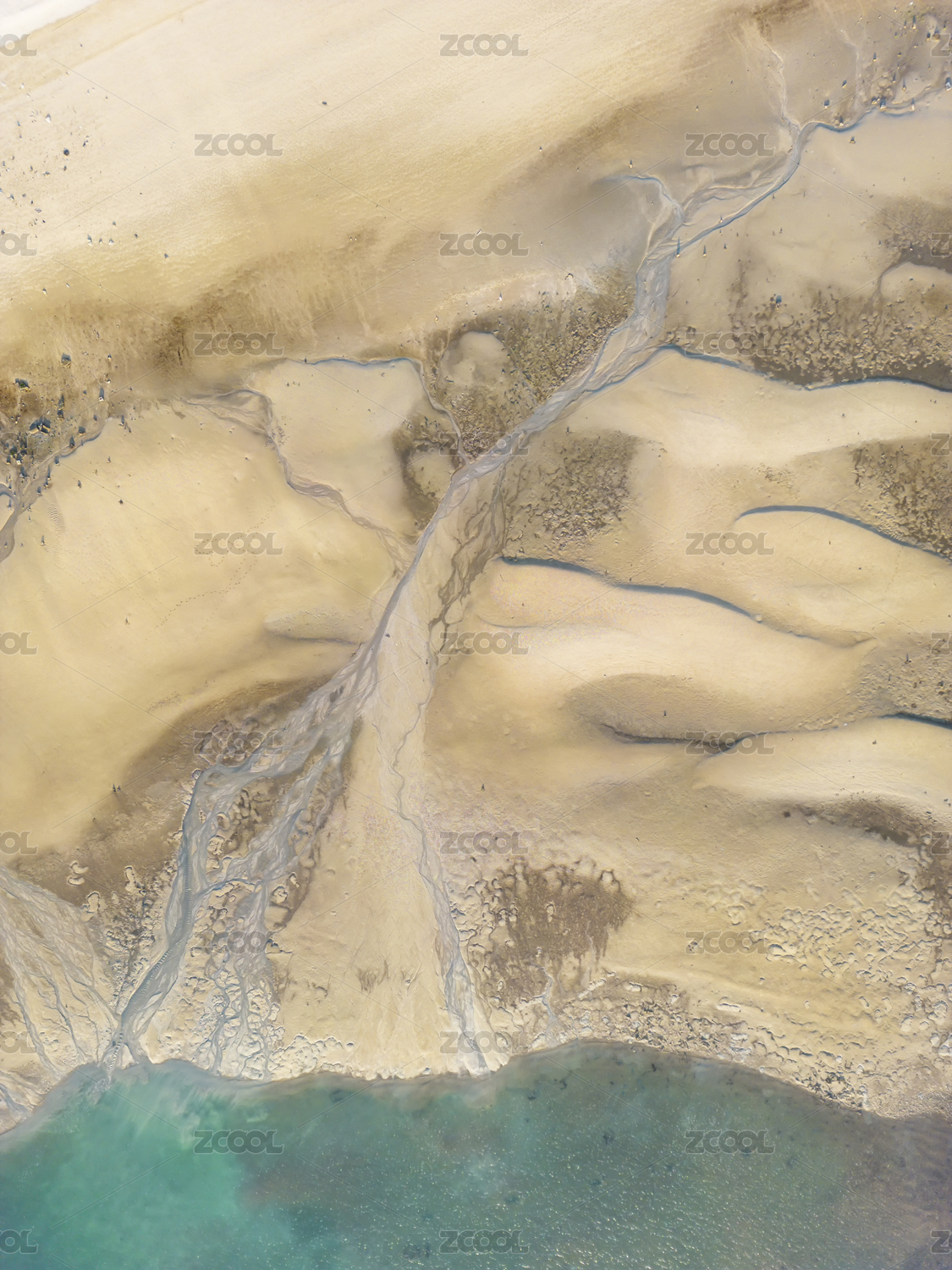 退潮后的海滩纹理和绿色海水航拍