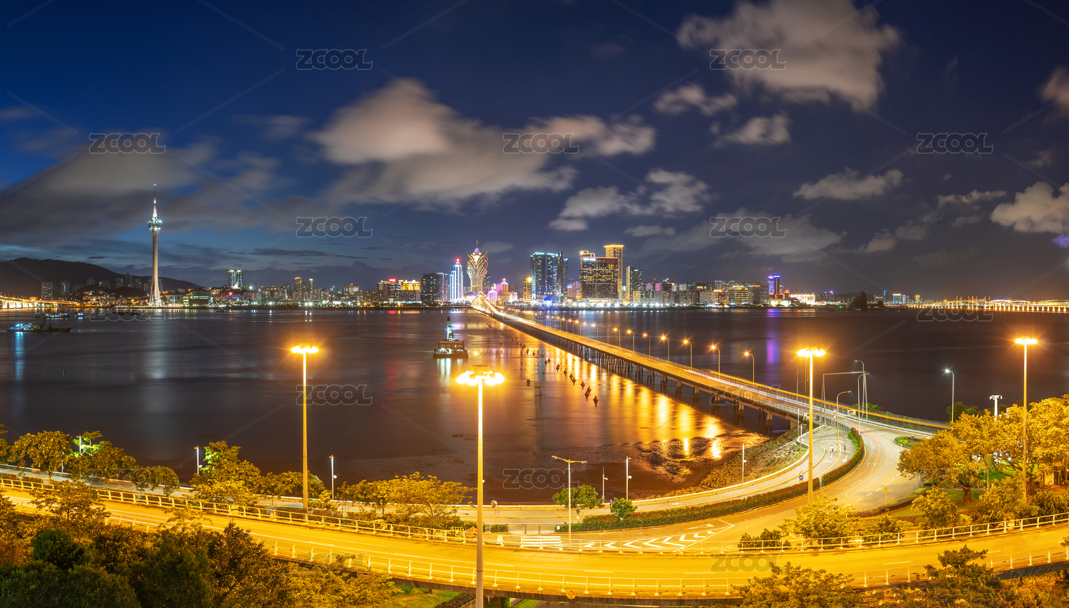 澳门,澳门岛,夜景,灯光,大桥,夜晚,晚上,倒影,美丽,旅游