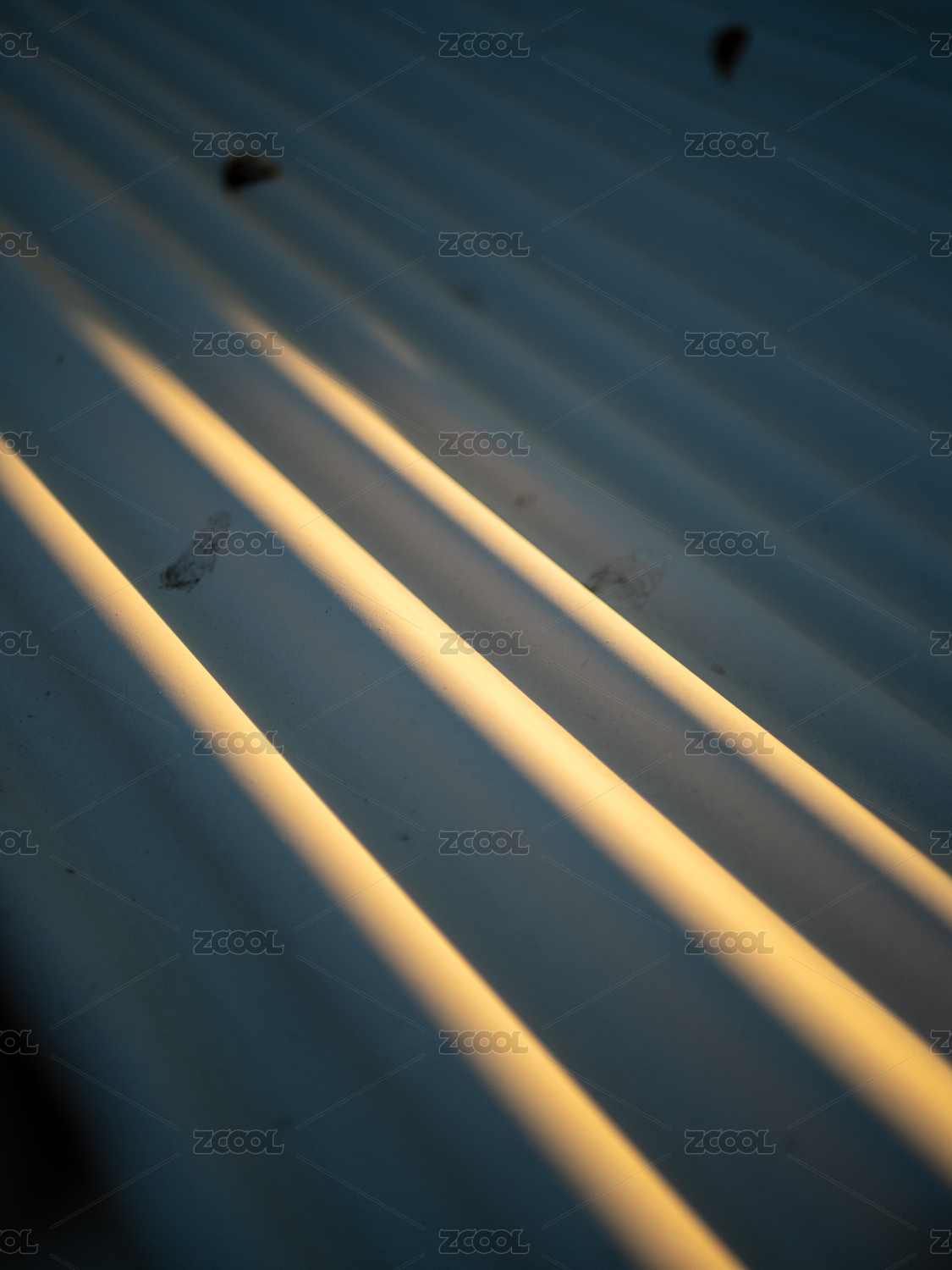 阳光透过栅栏照射到黄色建筑外墙上形成类似五线谱的影子