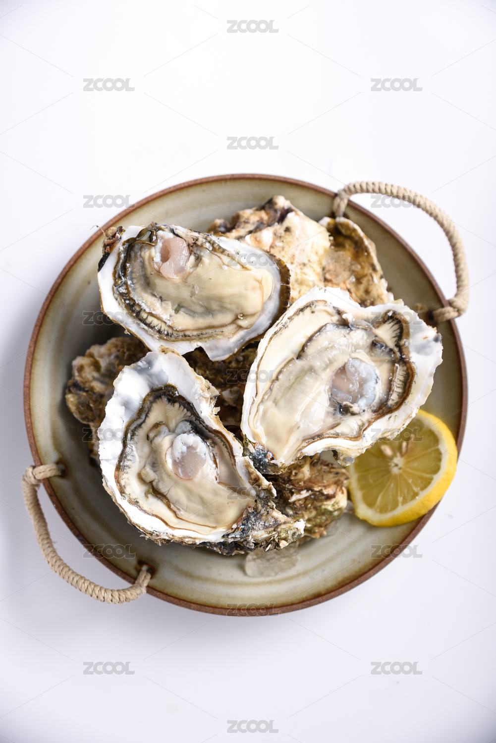 正上方白色背景盘子里的生蚝