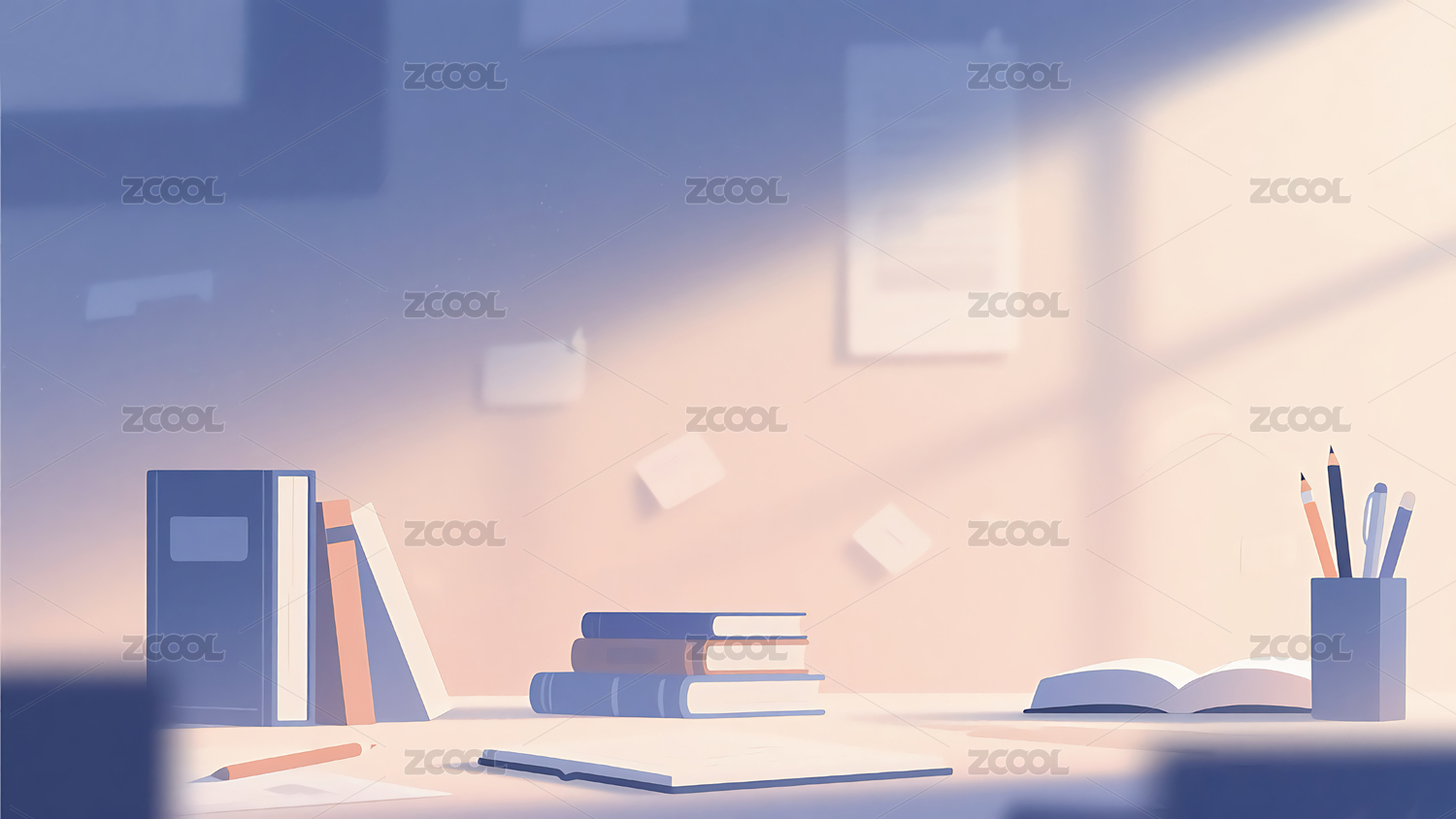 书桌书本灯光温馨蓝色背景
