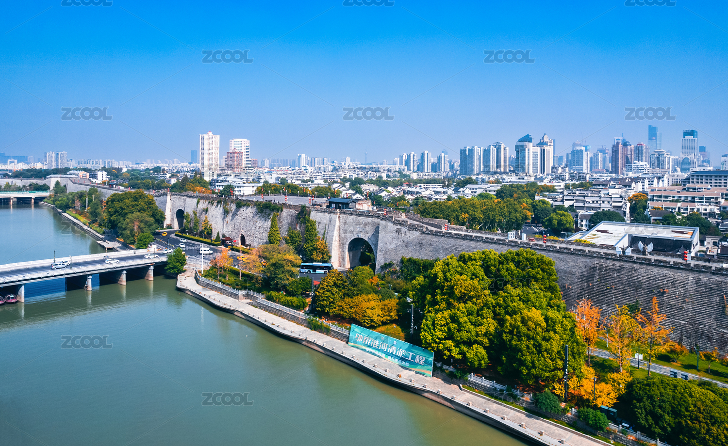 西安唐皇城墙与护城河秋天
