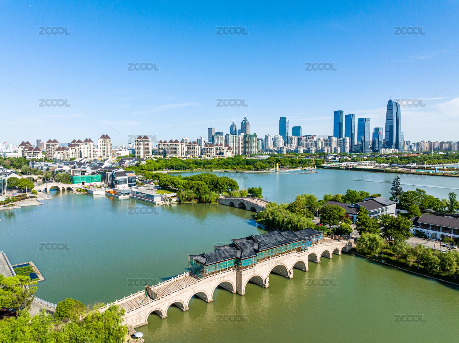 中国江苏苏州金鸡湖景区风光