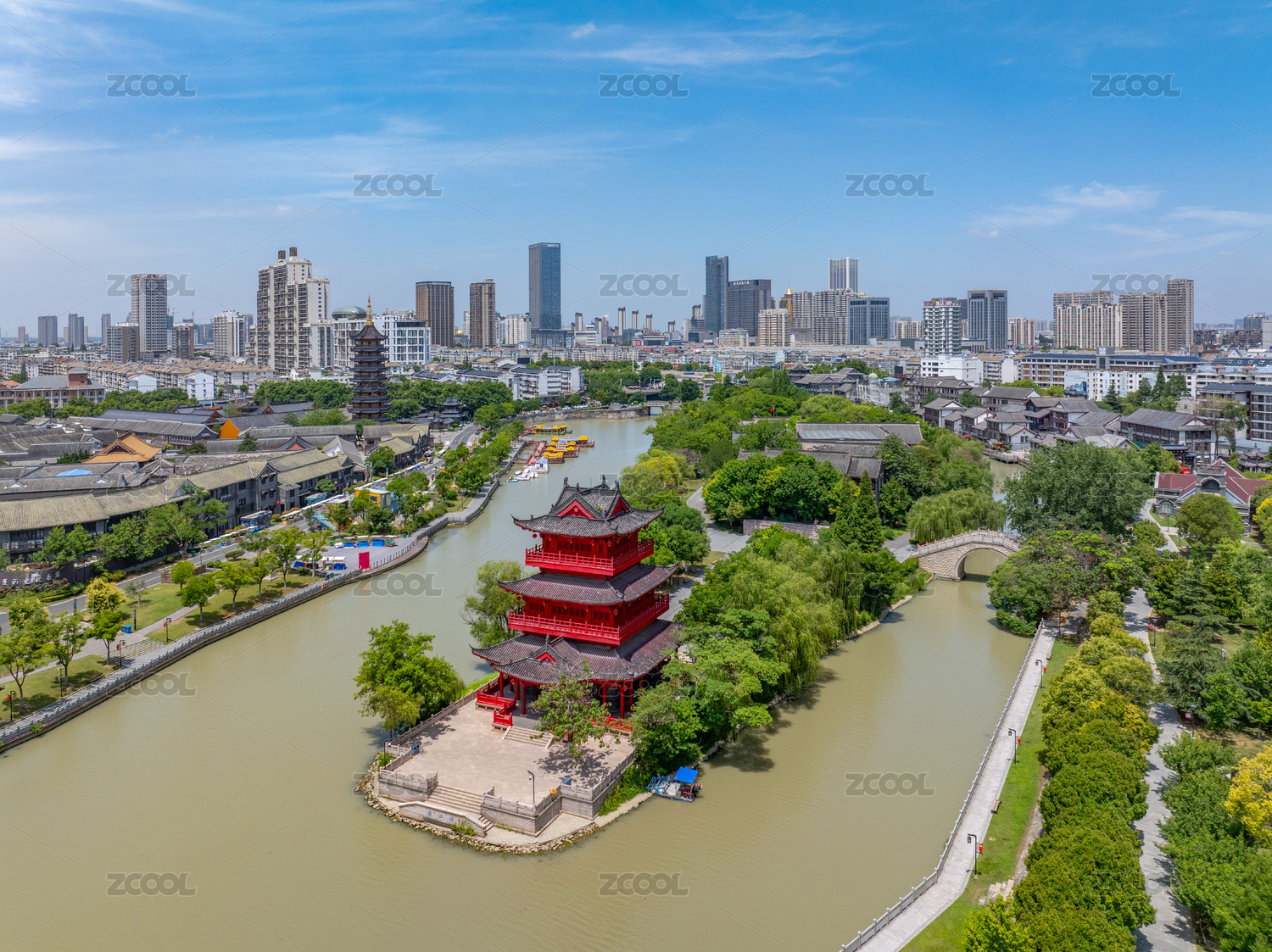 航拍江苏省常州天宁区东坡公园