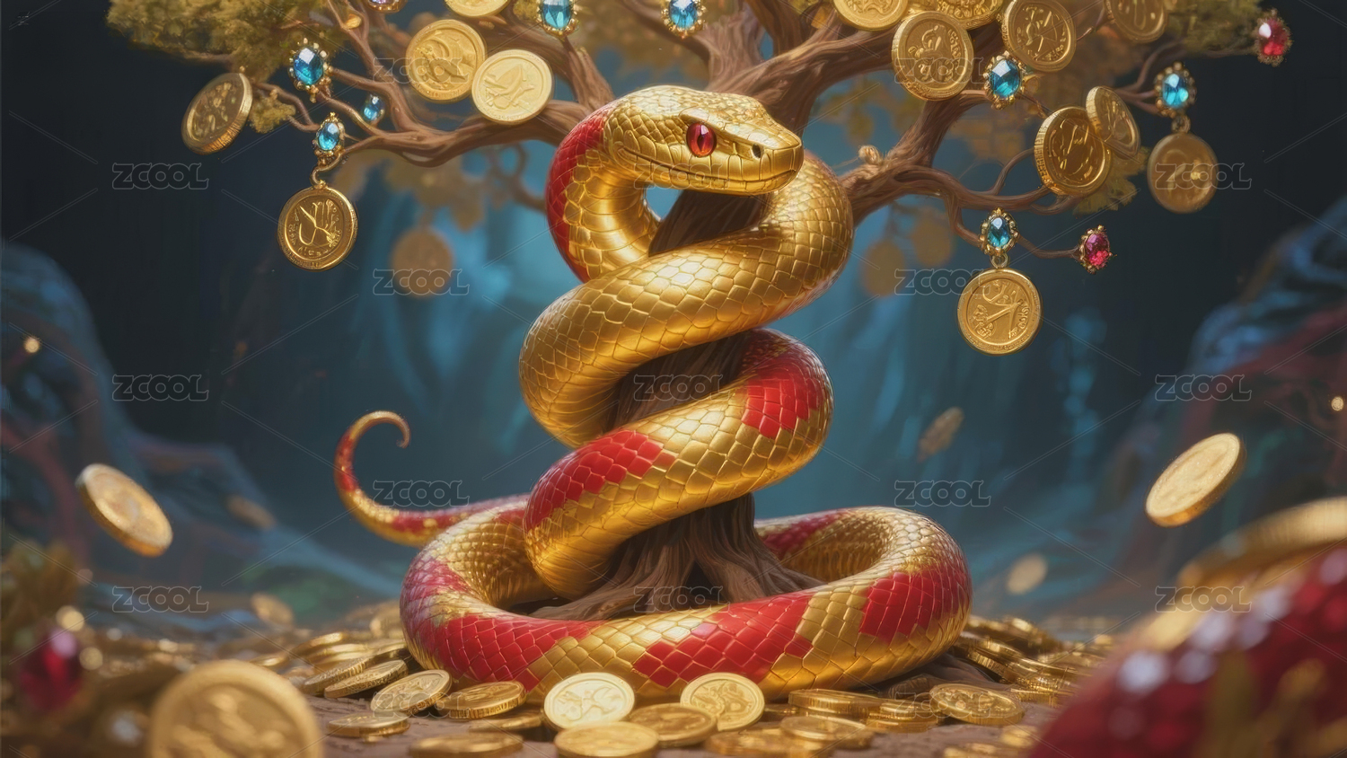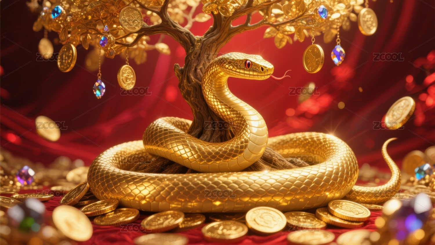 蛇,新年,春节,喜庆,吉祥,富贵,黄金,财富,可爱,卡通