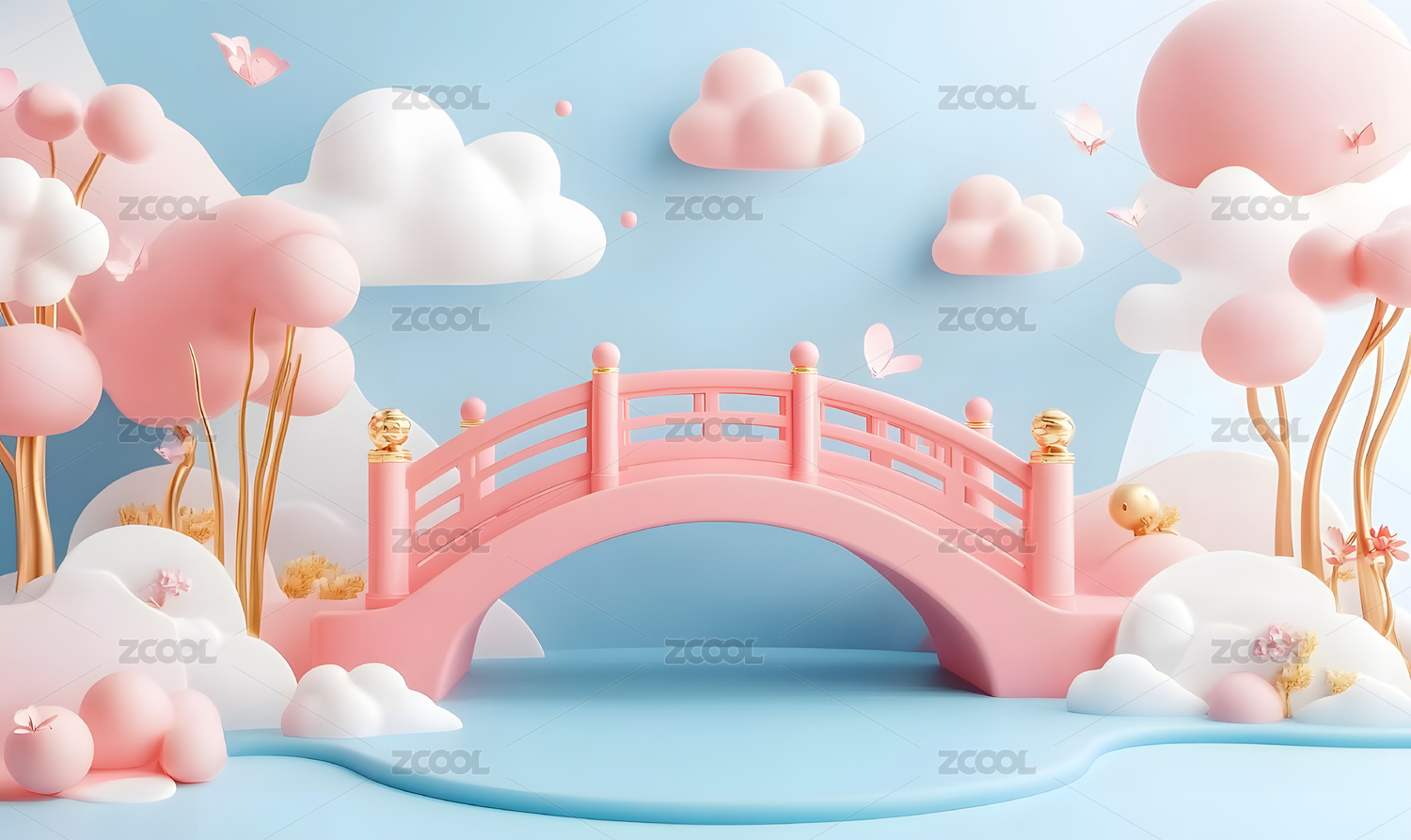情人节,七夕,桥梁,3D,情侣,插画,月亮,节日,爱情,牛郎