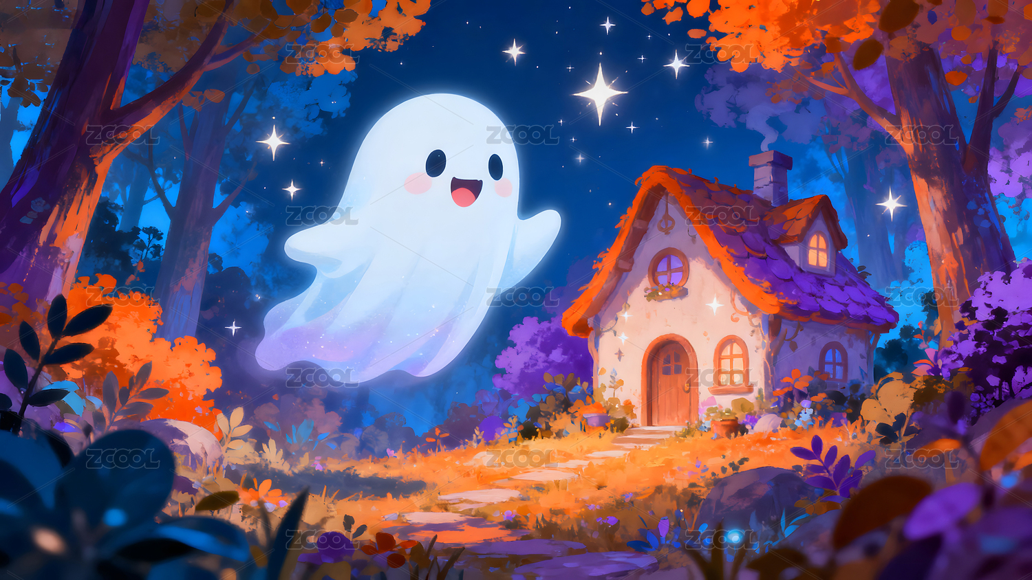 梦幻森林中的可爱小幽灵