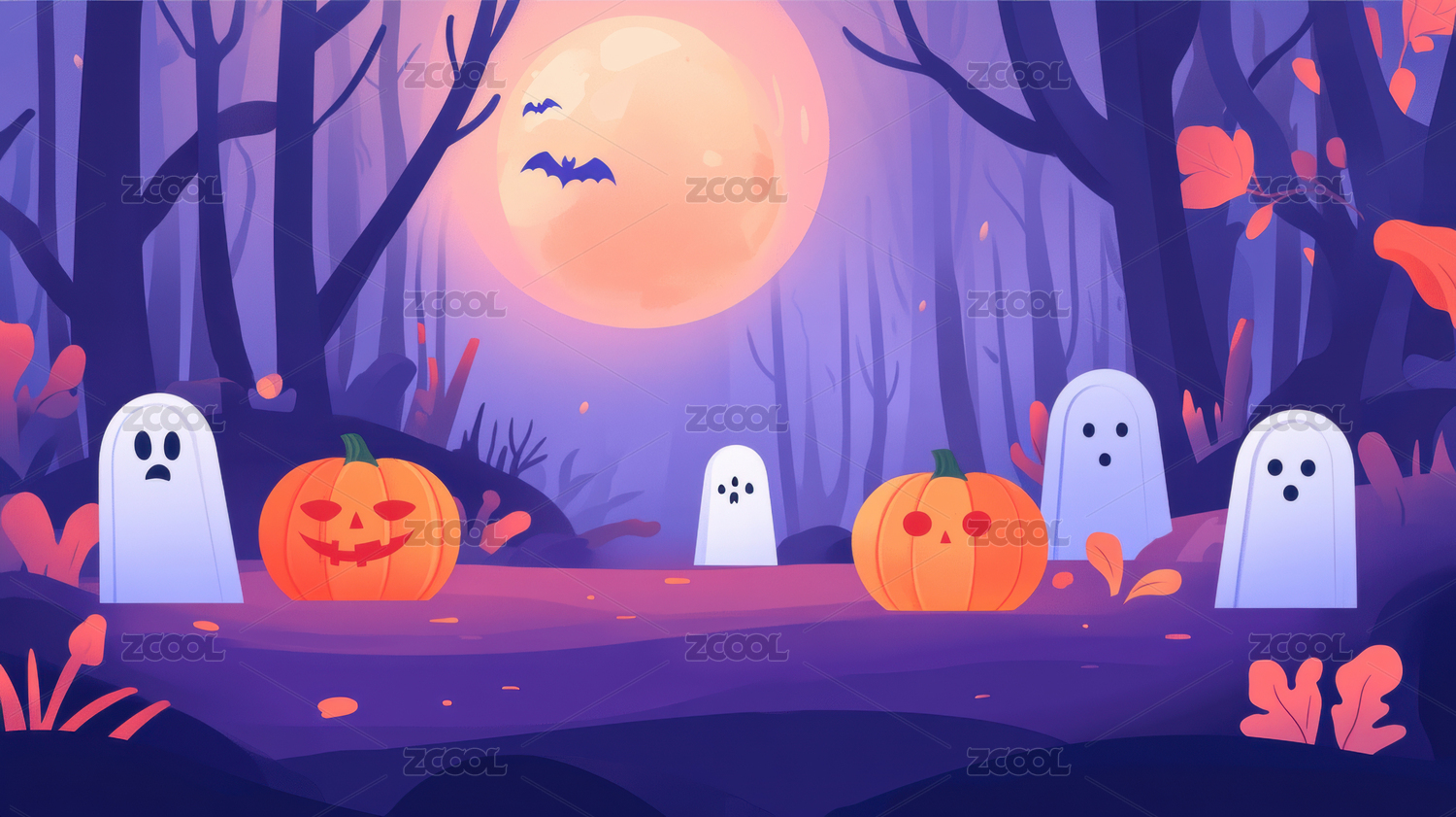 万圣节鬼怪秋天设计装饰卡通插画海报背景