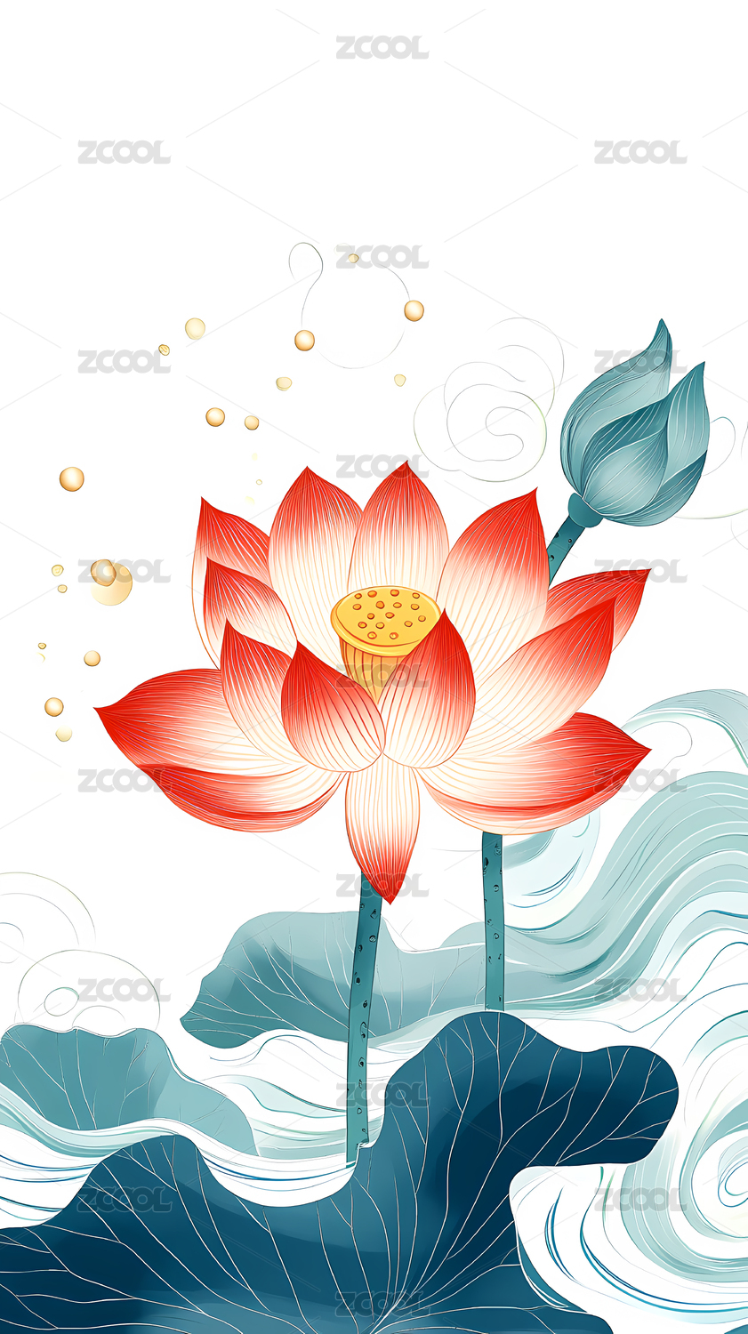 荷花,节气,荷叶,插画,夏天,夏至,立夏,大暑,户外,莲花