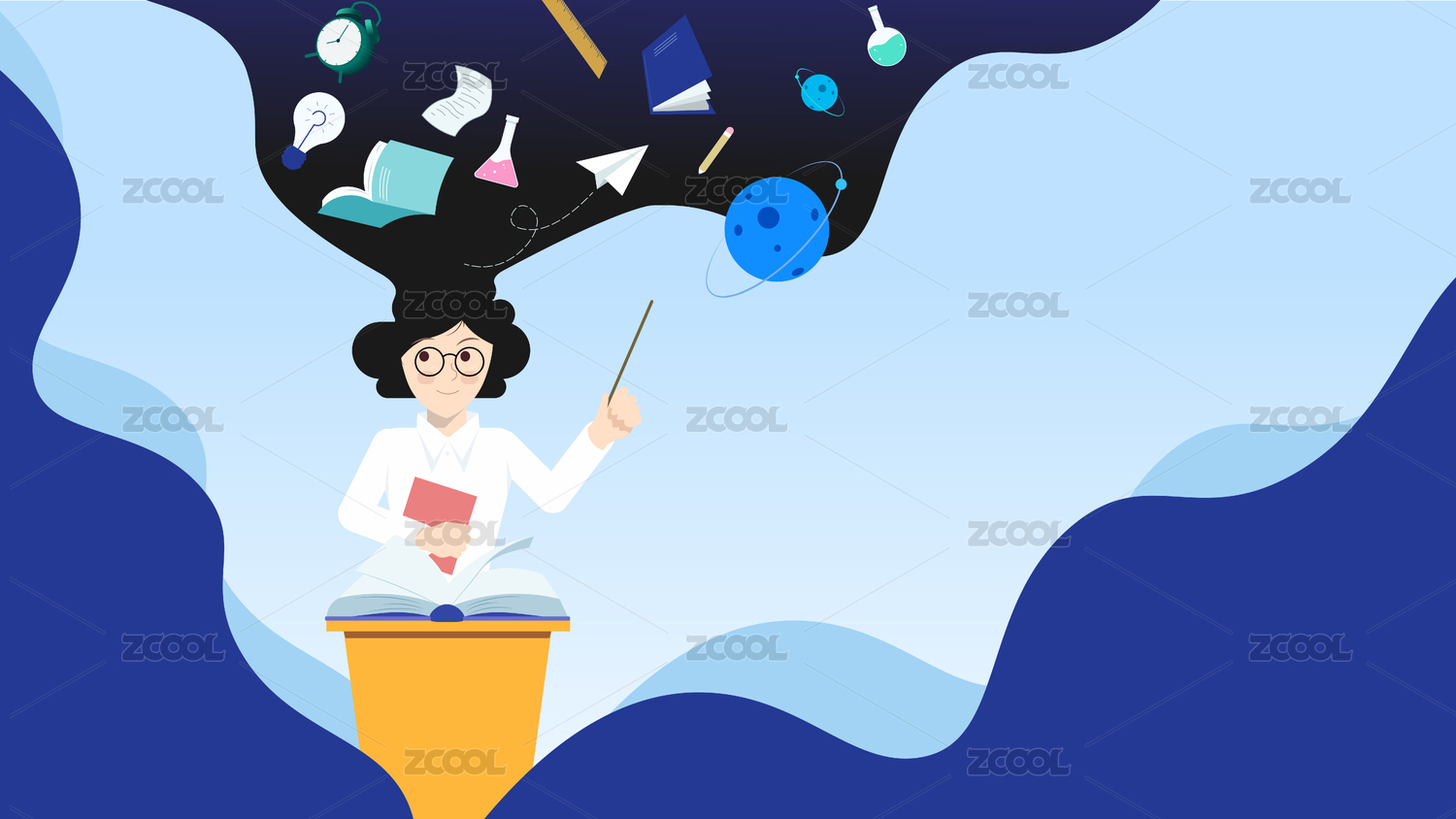 一位教师和书本等知识符号背景