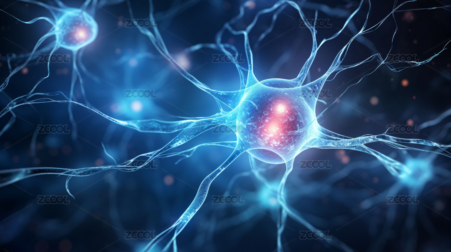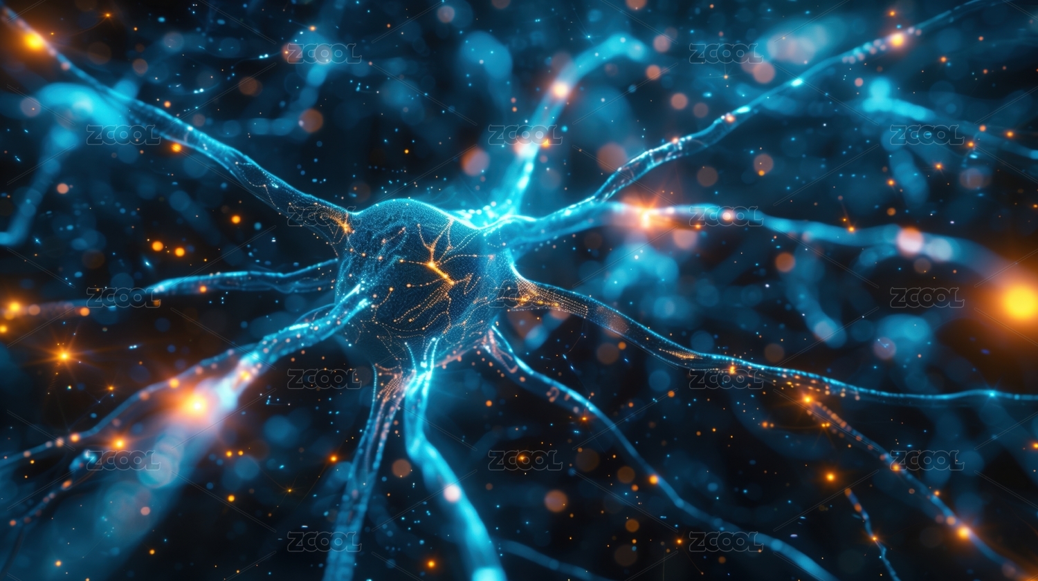 神经元细胞神经系统特写,抽象的蓝色闪光神
