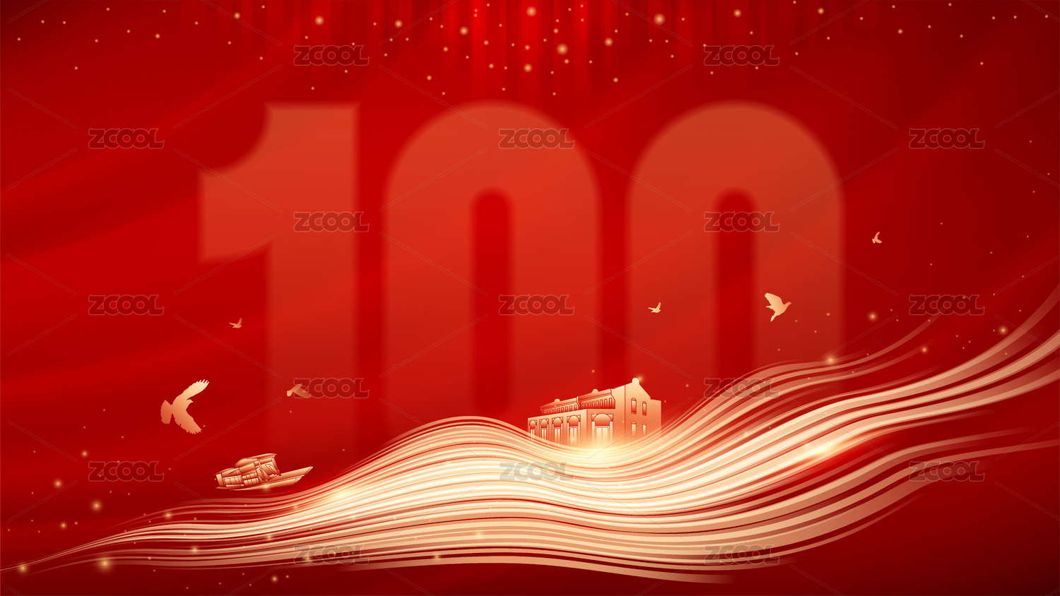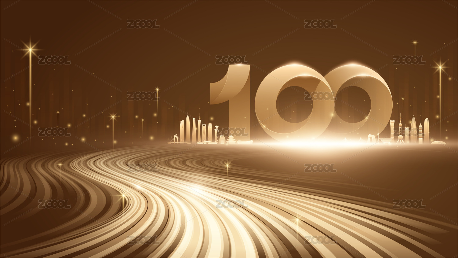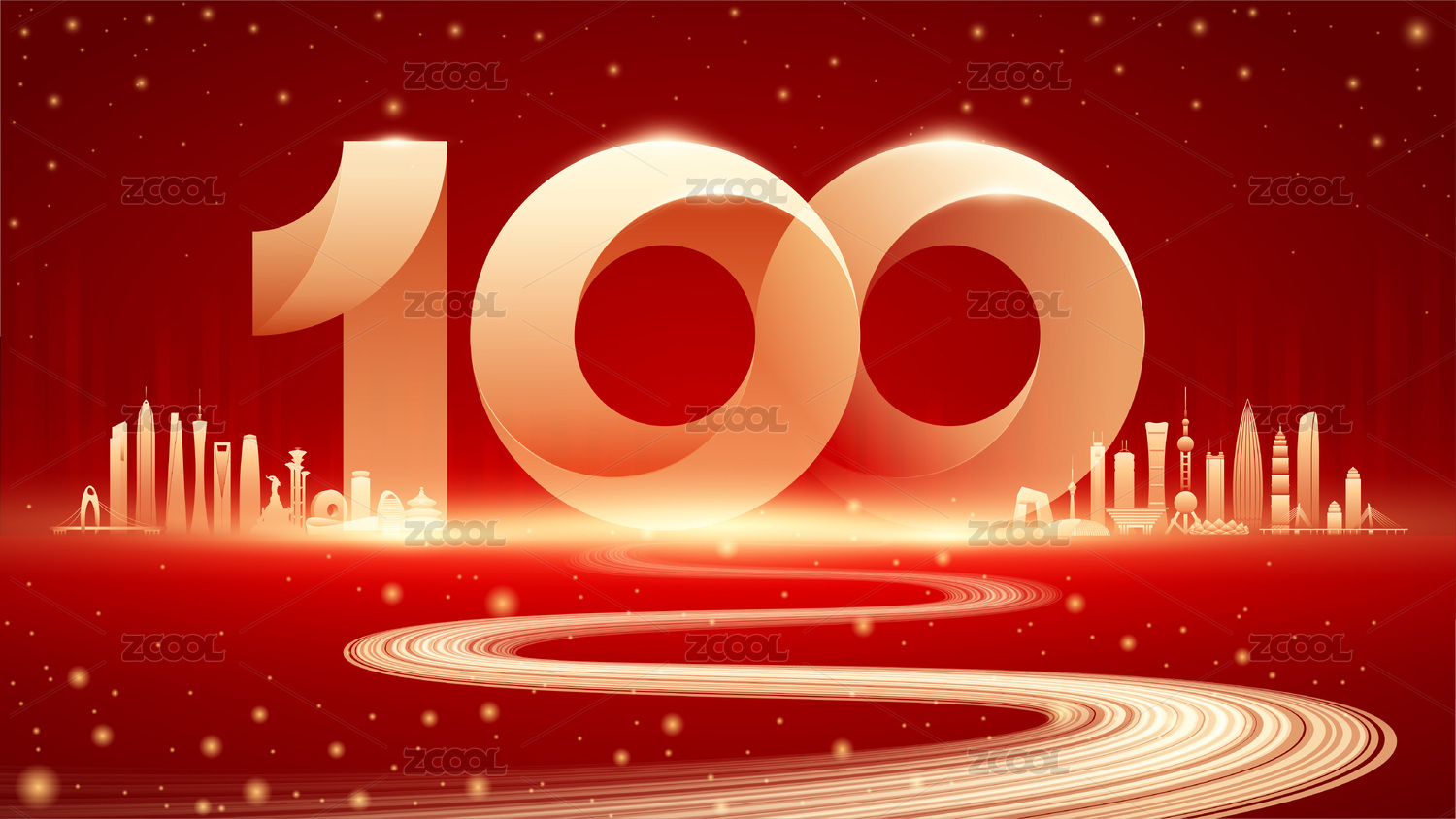 国庆,插画,红绸,太阳,星光,粒子,道路,党,百年,周年