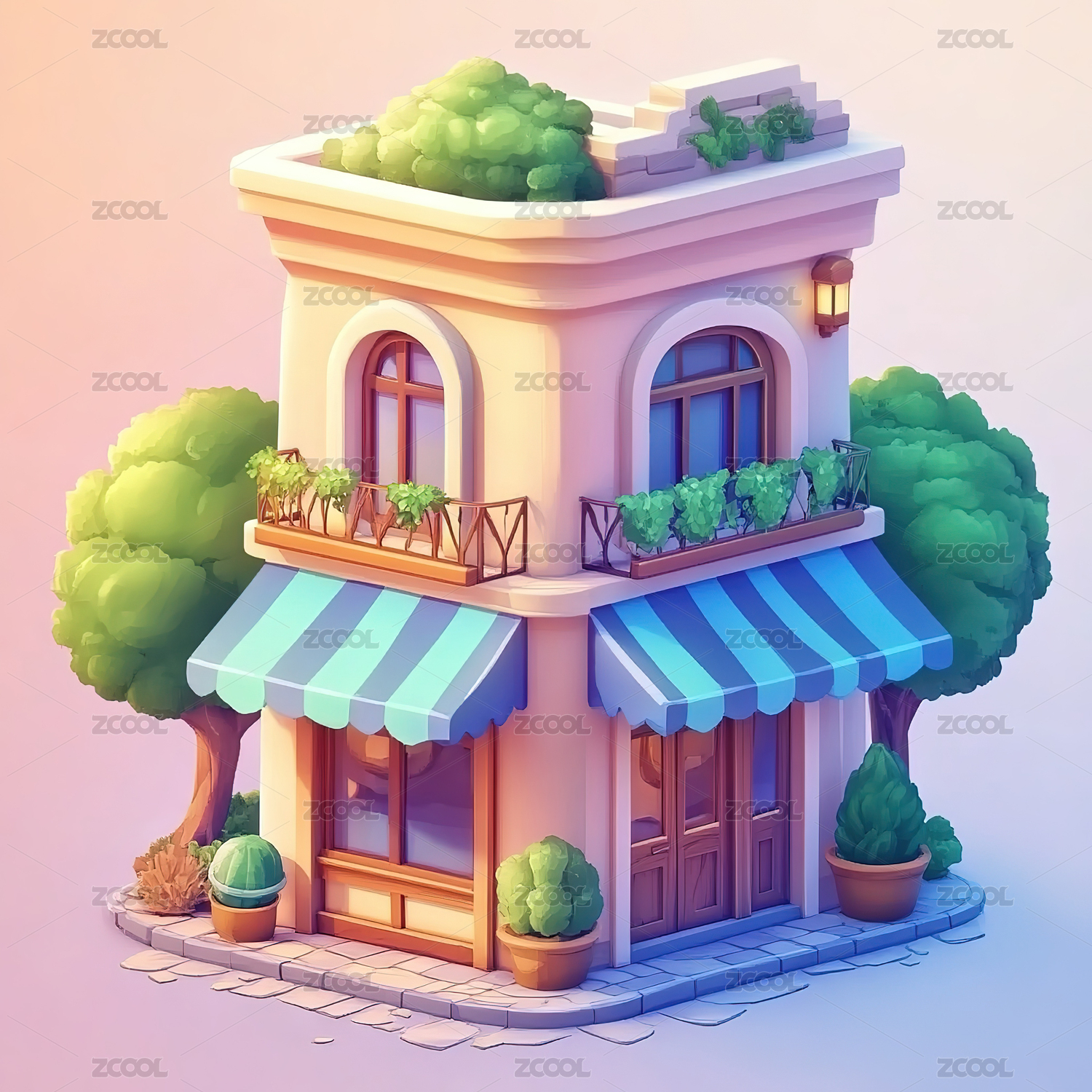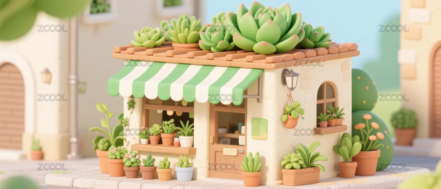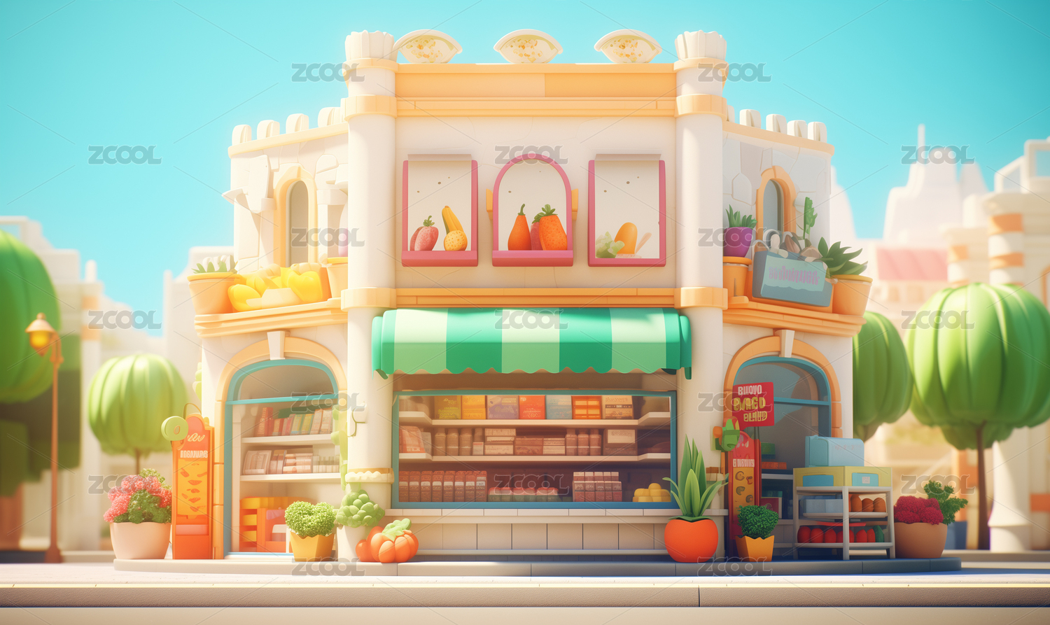 无人,现代,3D,插画,卡通风格,商店,货架,超市,门口