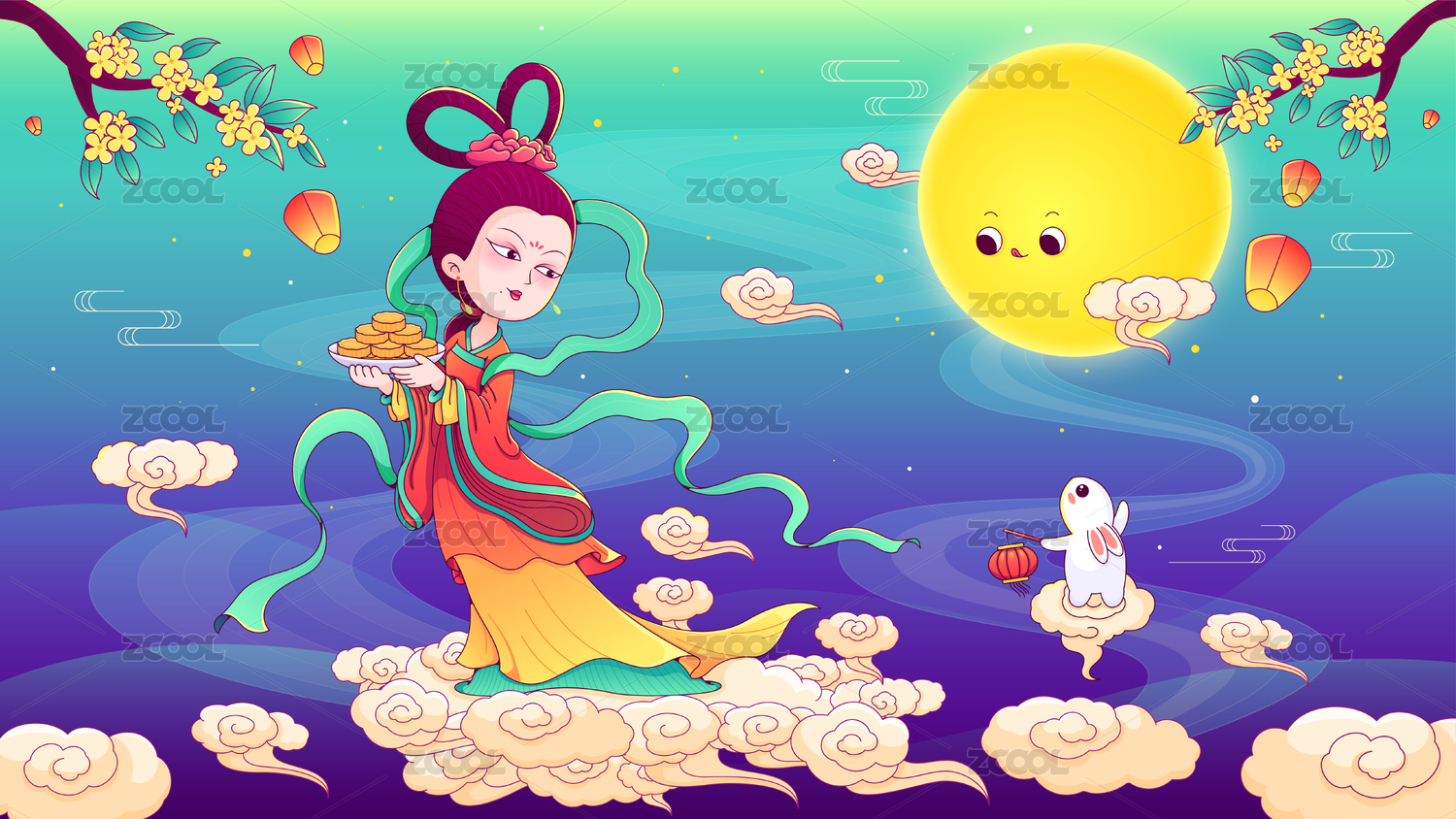 中秋节嫦娥送福矢量插画
