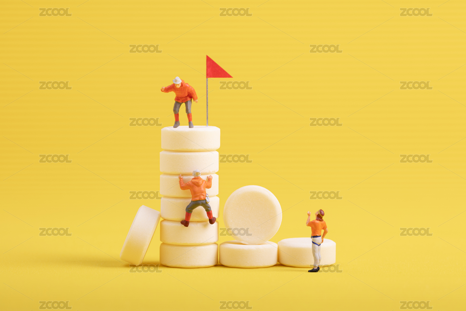 微缩创意奶制品奶片奶贝补钙运动青年攀岩