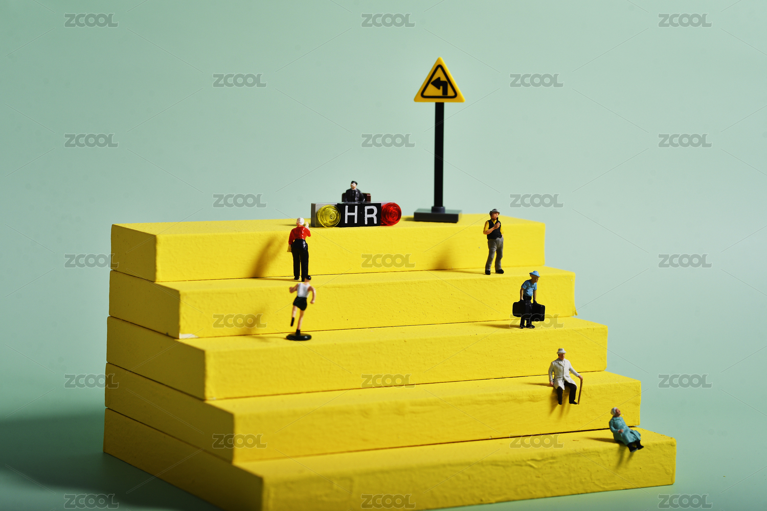 绿色背景上正在爬楼梯的小人偶就业季主题