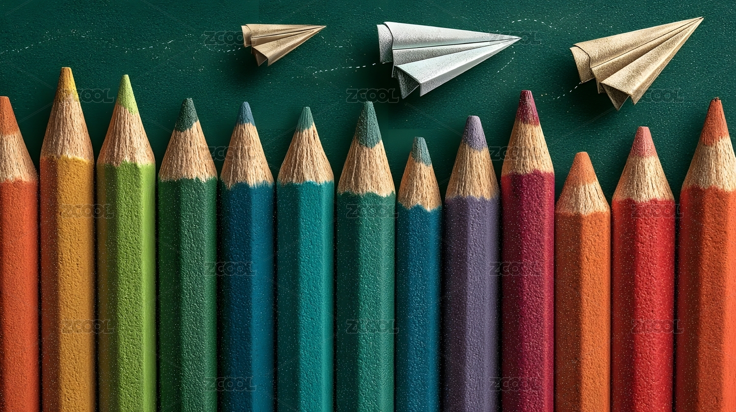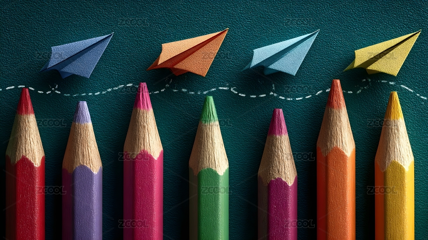 彩色铅笔与纸飞机