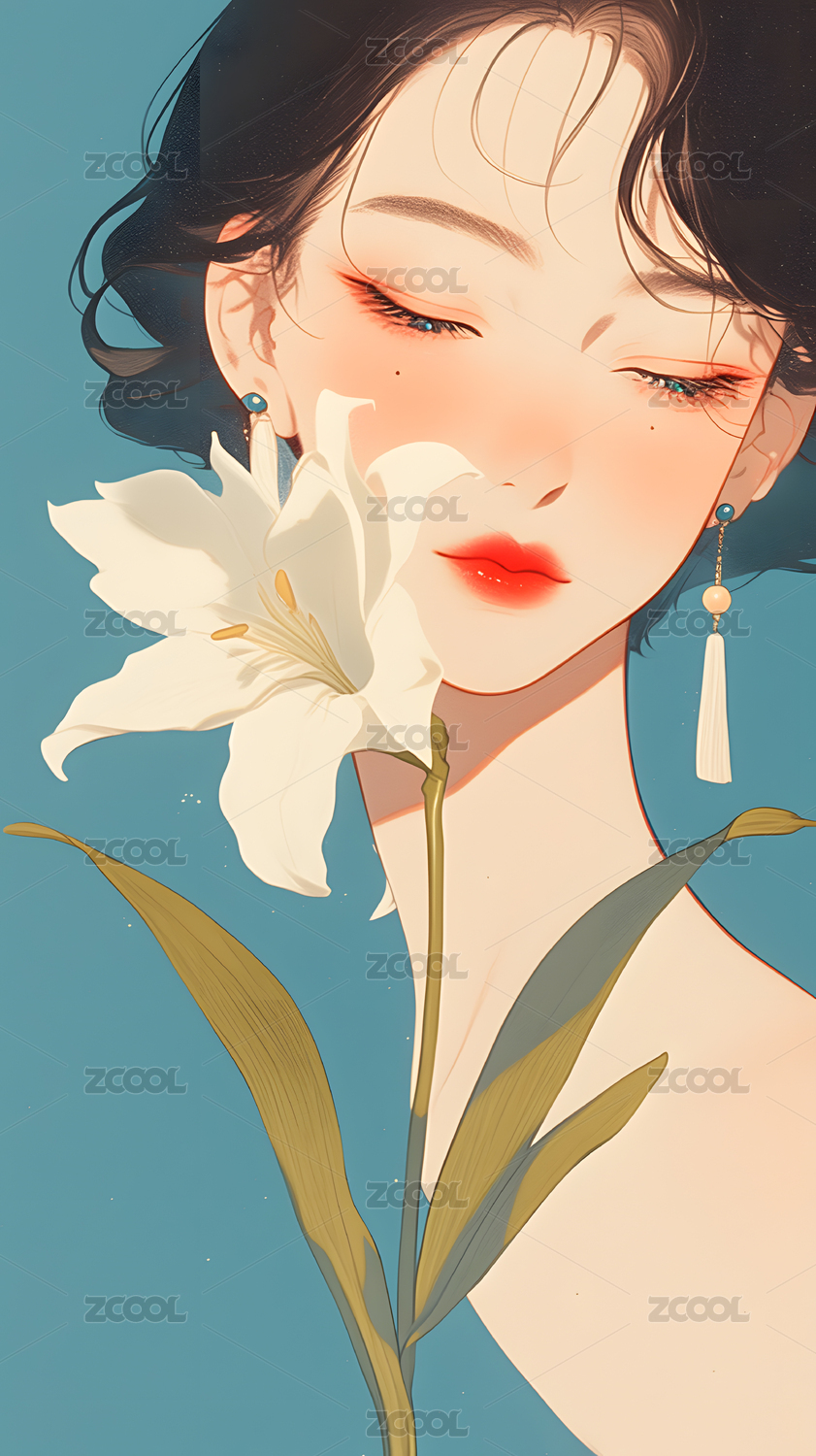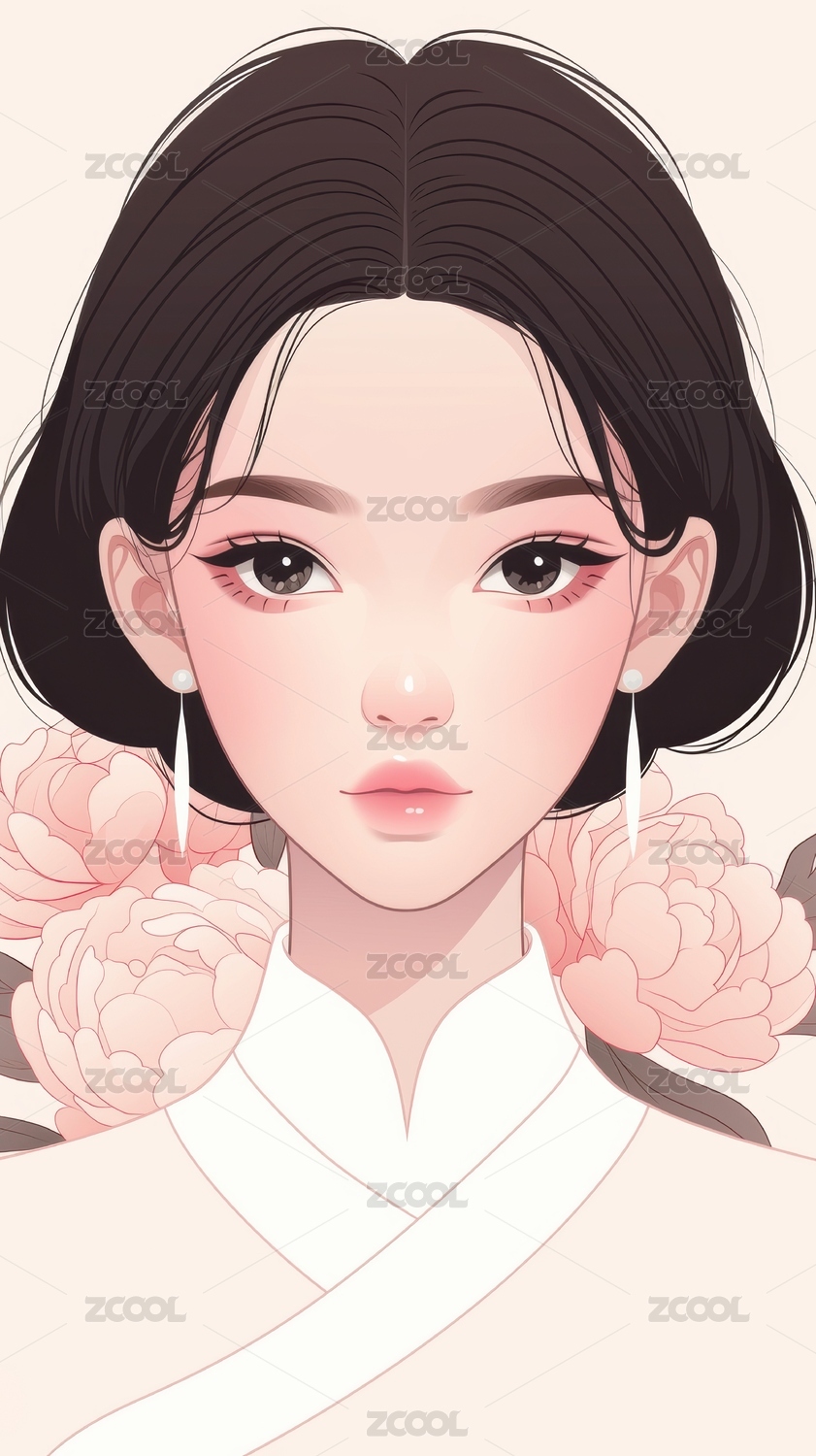 中国风,美女,女孩,人,可爱,卡通,插画,国潮风