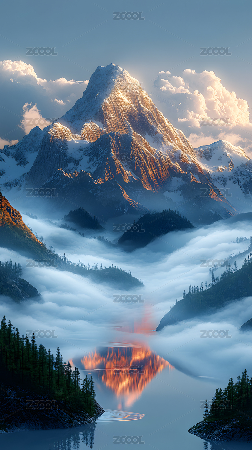 一幅壮丽雪山的自然景观