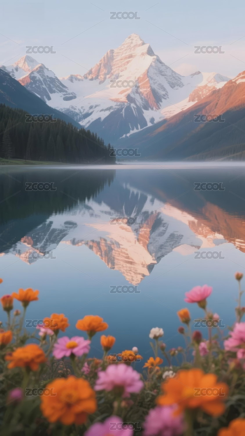 雪山湖畔的晨曦