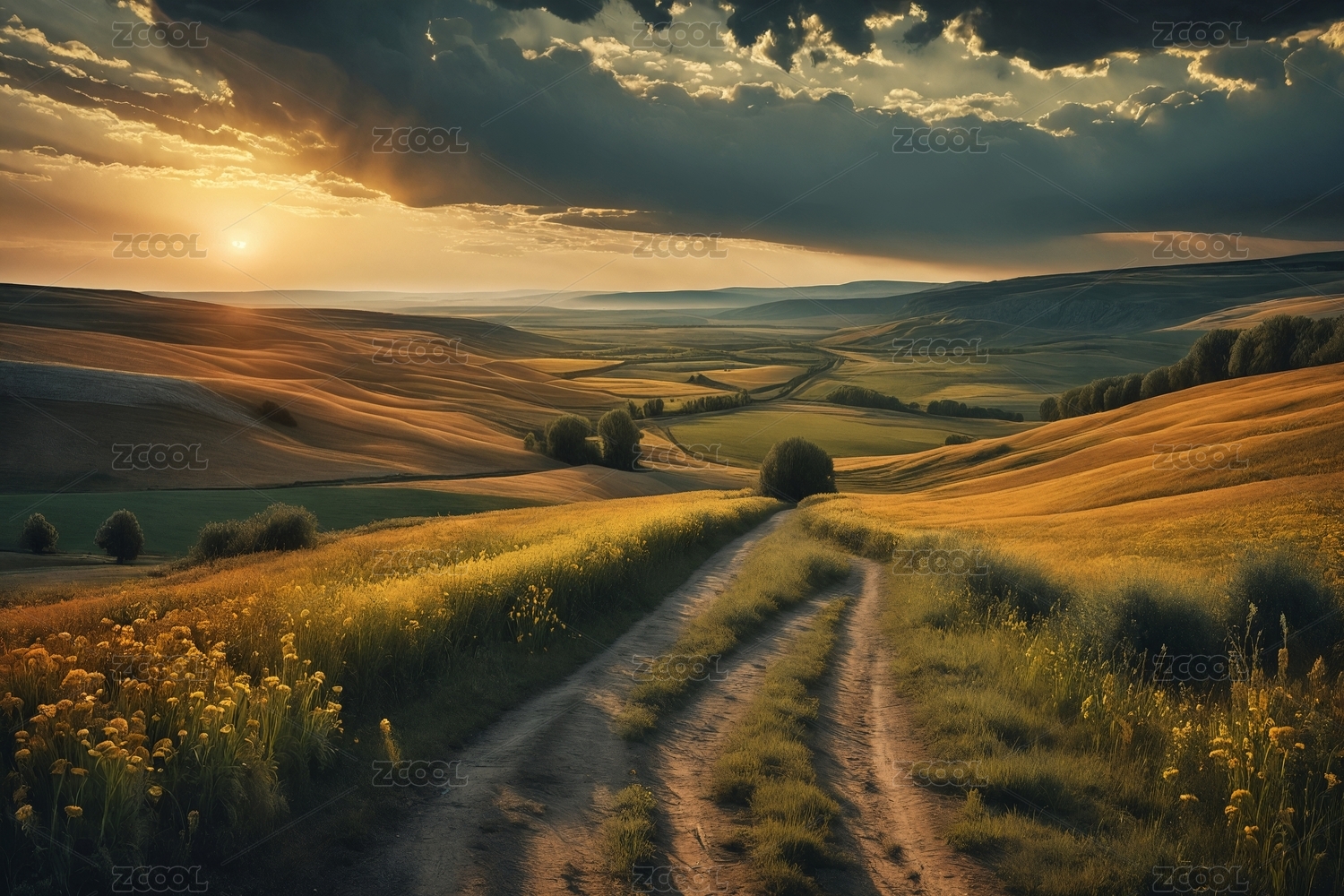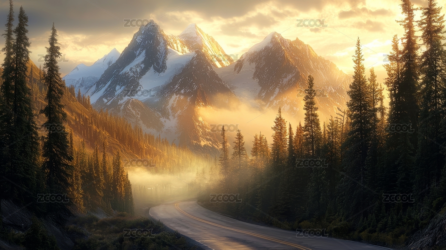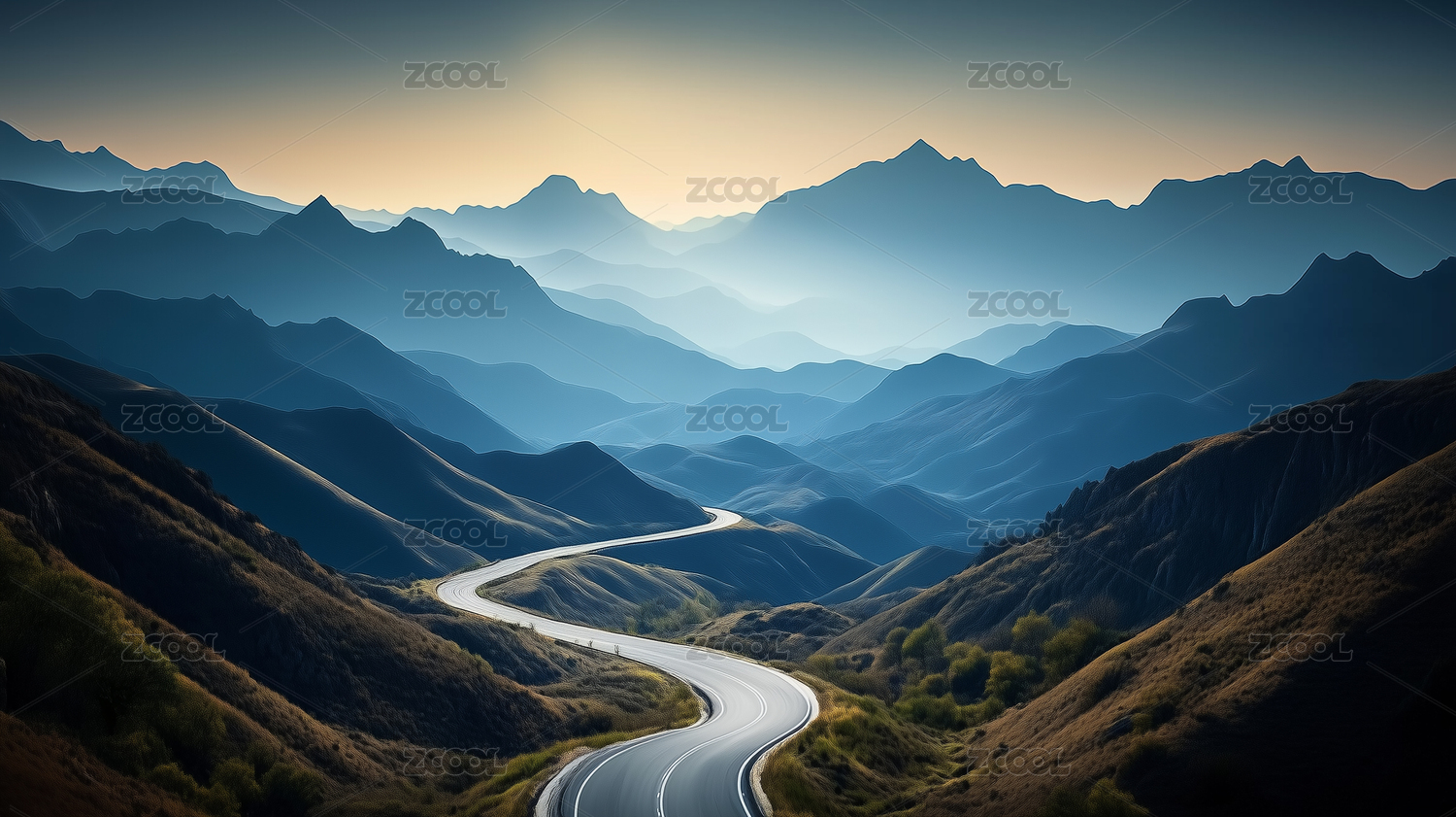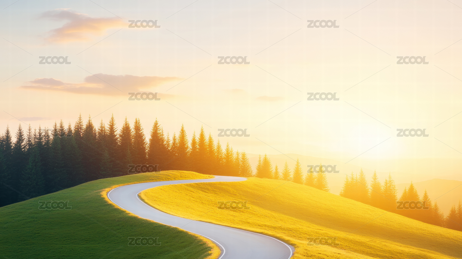 山,道路,日落,树木,草,天空,云,太阳,光,自然