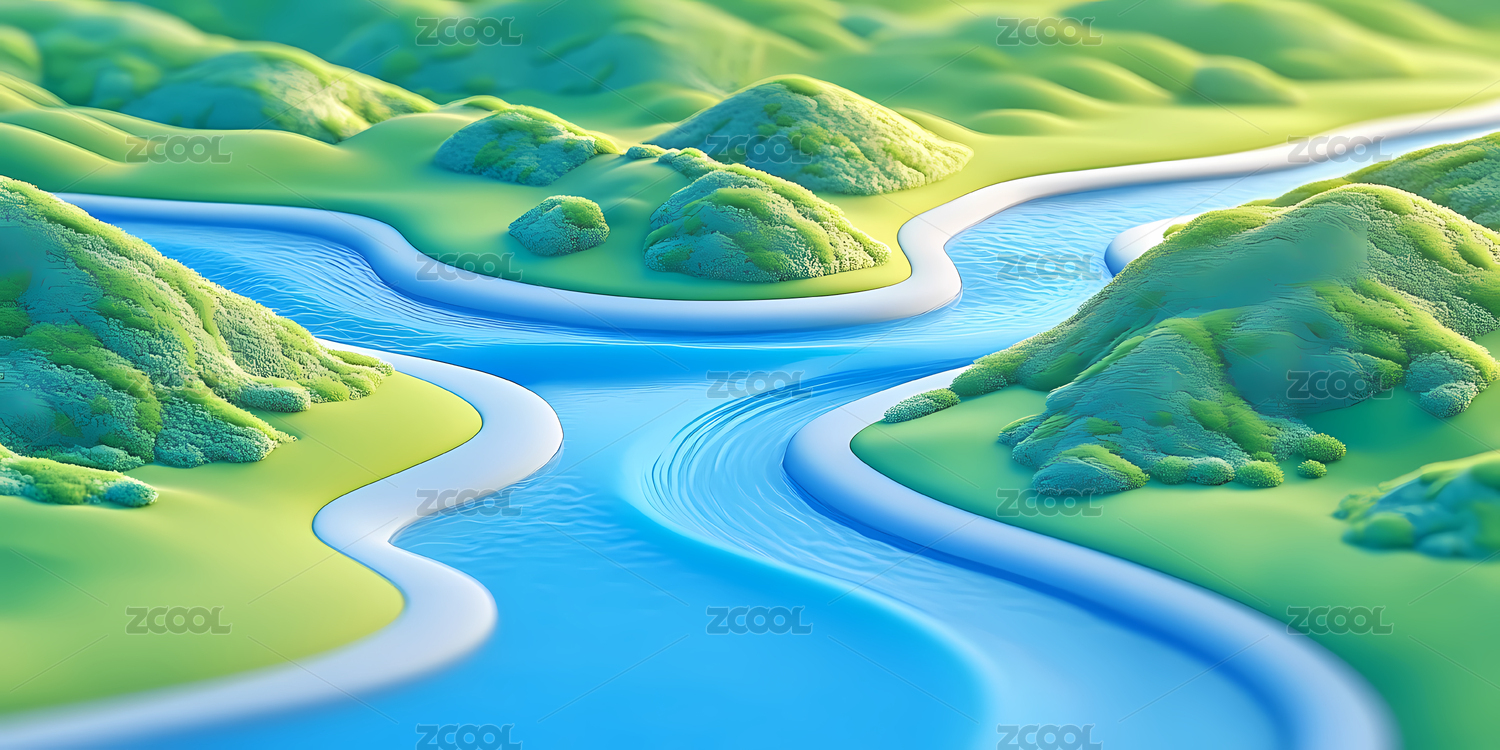 森林瀑布夏天旅行户外环境夏季旅游场景插画