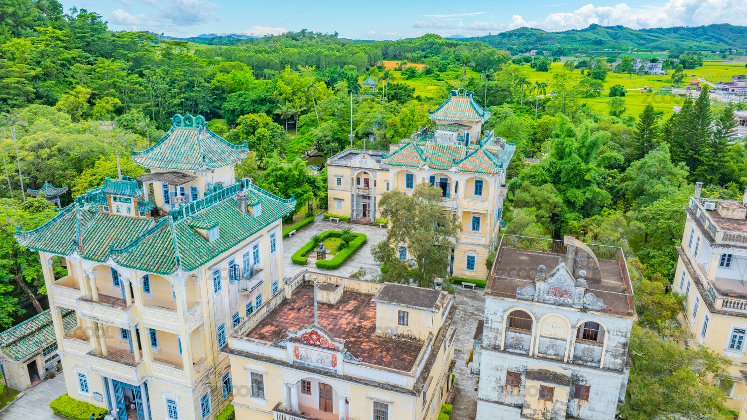 航拍广东岭南开平碉楼