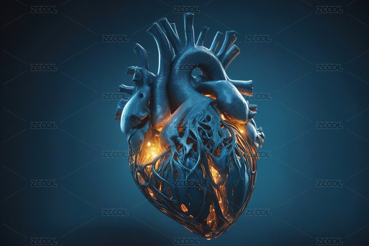 心,脉搏,血液,生命,动脉,静脉,蓝色,金色,光芒,解剖