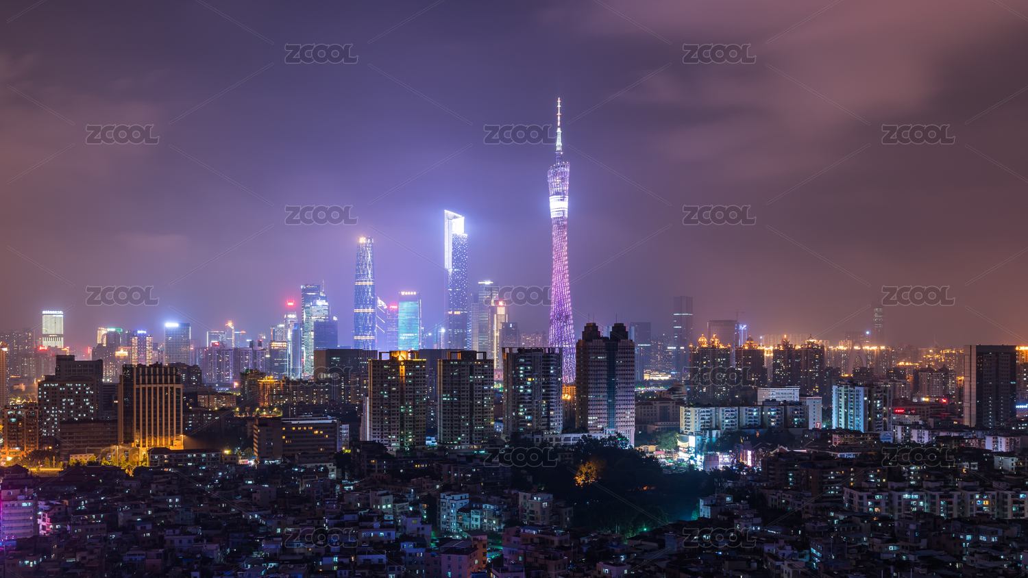 广州,城市,城市风光,夜景,晚霞,建筑,广州塔,西塔,东塔,风光
