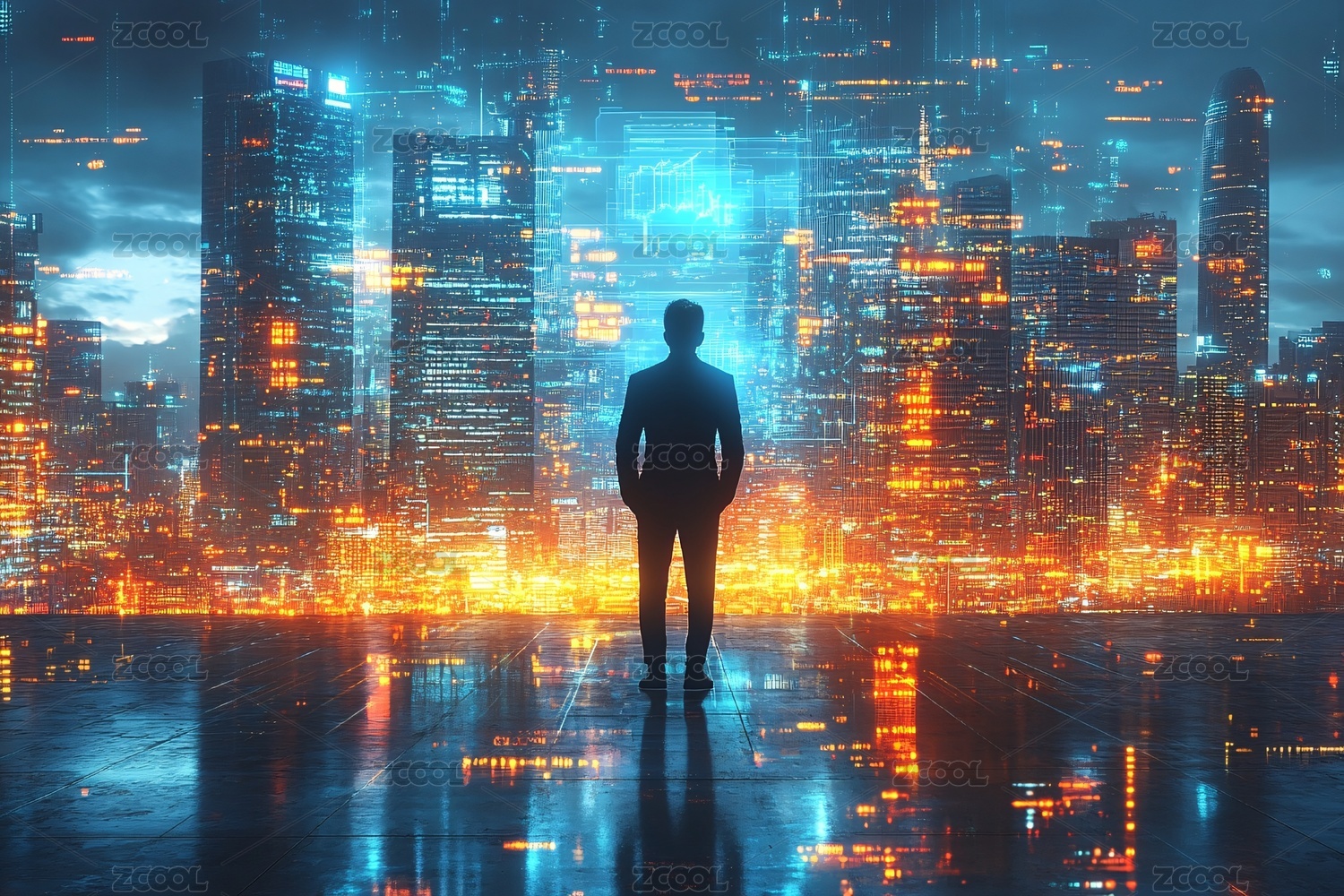 光线, 夜晚, 科技感, 未来, 数据, 建筑, 人影, 场景, 孤独, 寂静